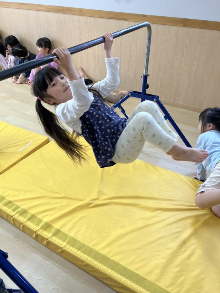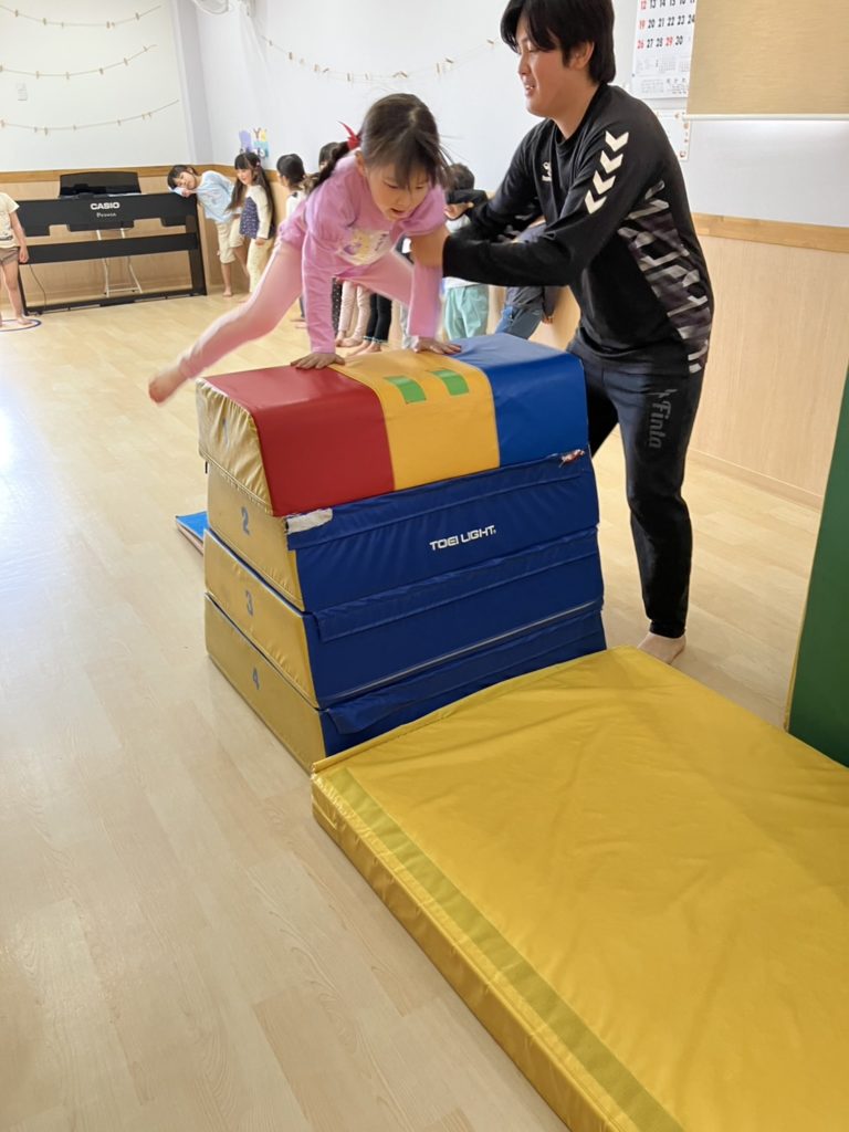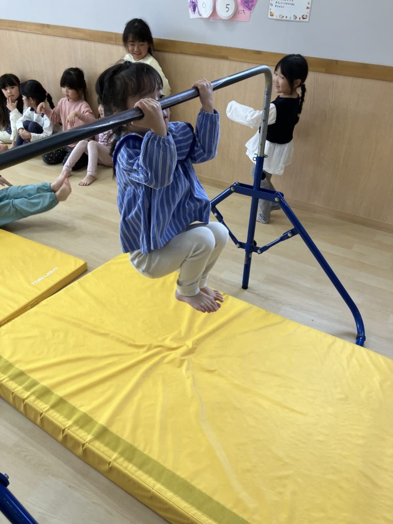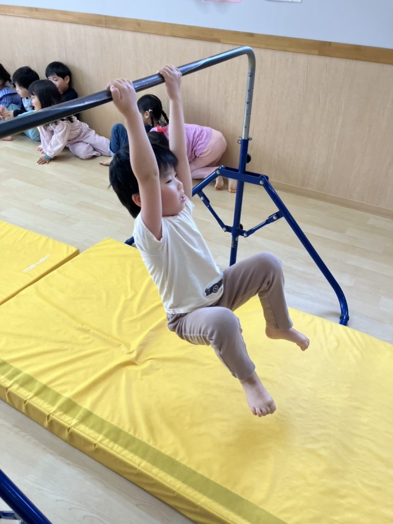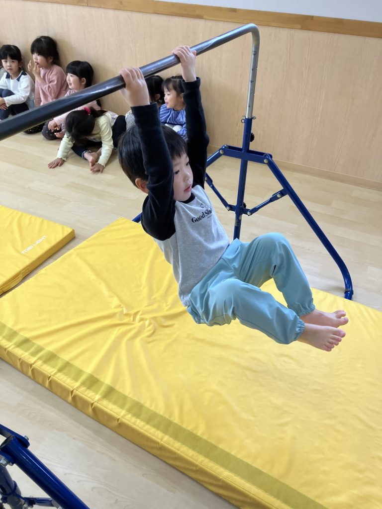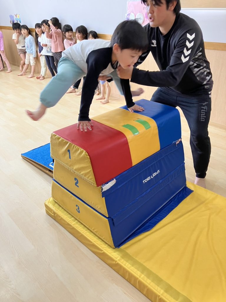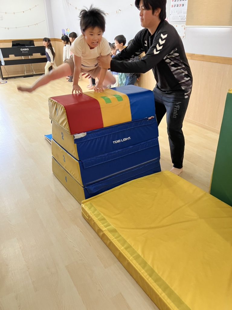 腹筋を使って鉄棒にぶら下がってみたり、跳び箱からスーパージャンプ!をしました!