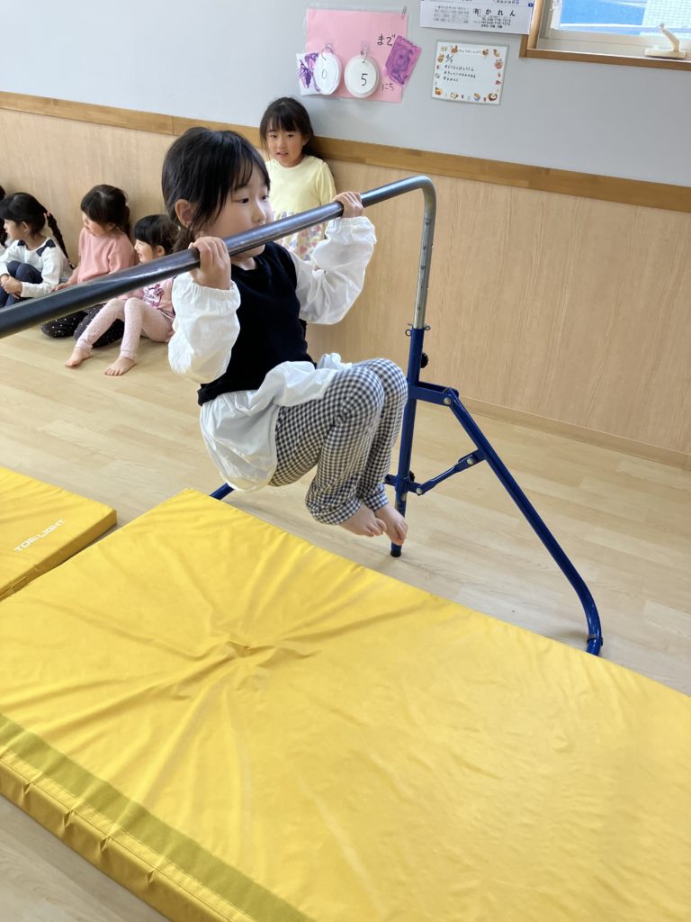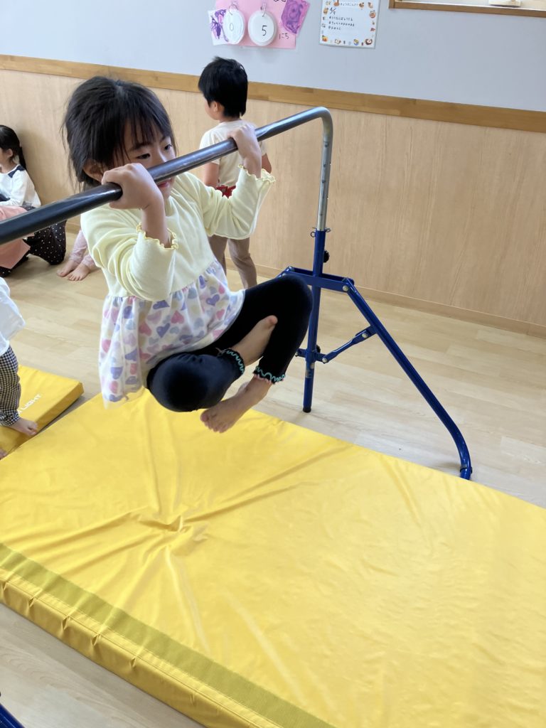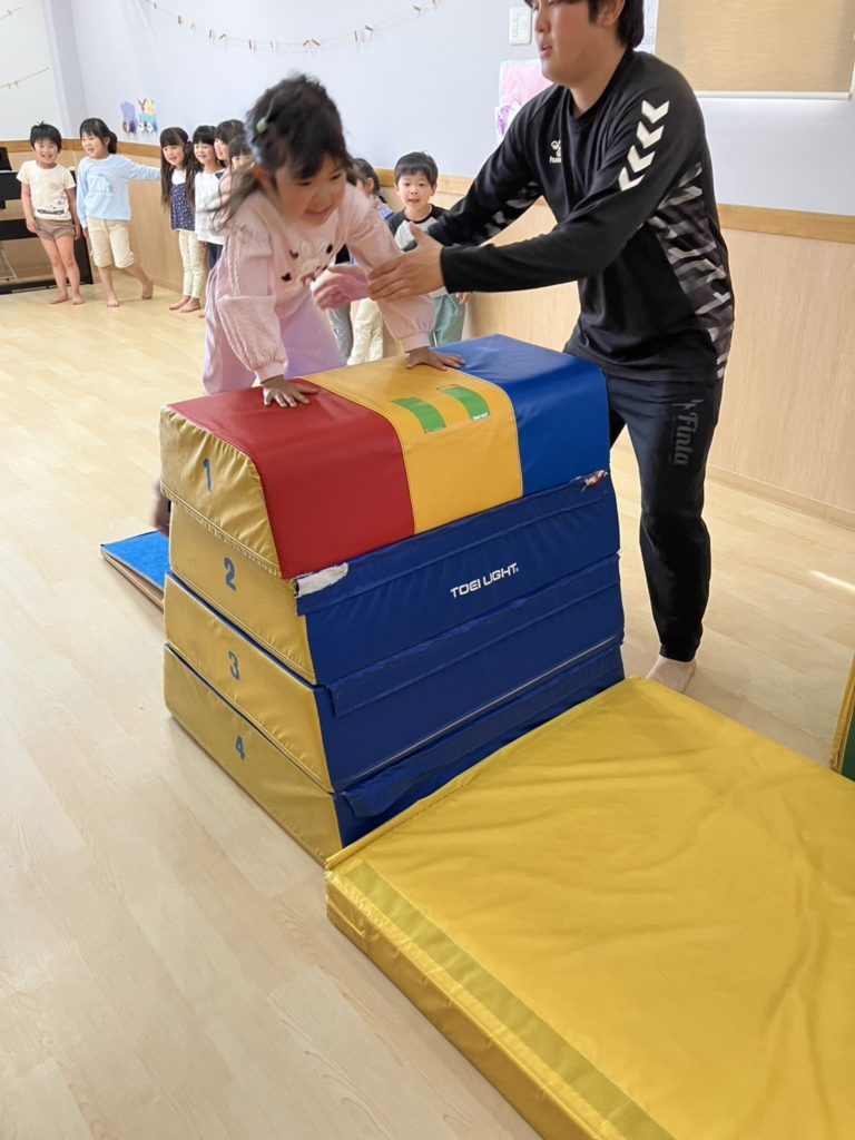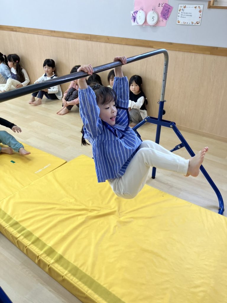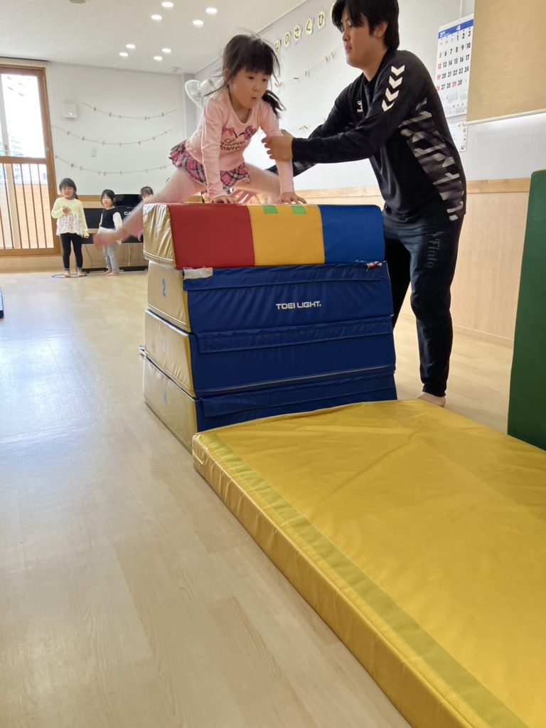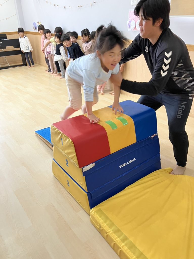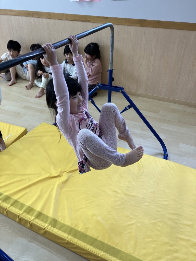 腹筋を使って鉄棒にぶら下がってみたり、跳び箱からスーパージャンプ!をしました!