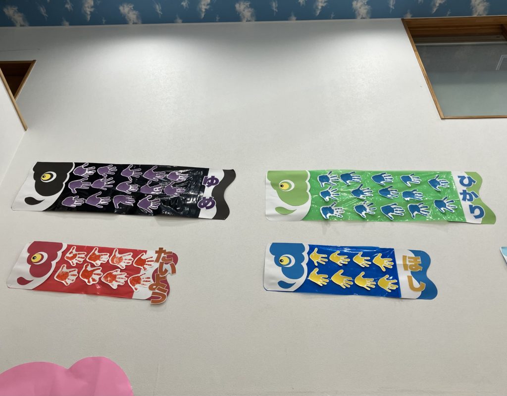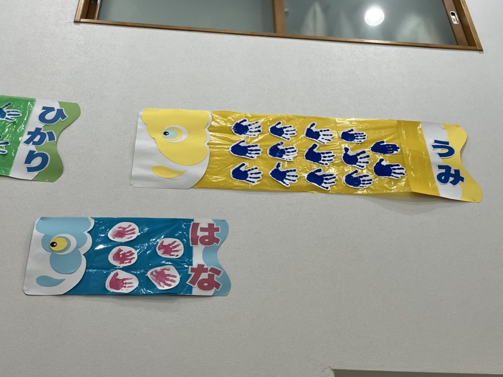 そして保育園にはみんなの手型で作った鯉のぼりを飾りました!