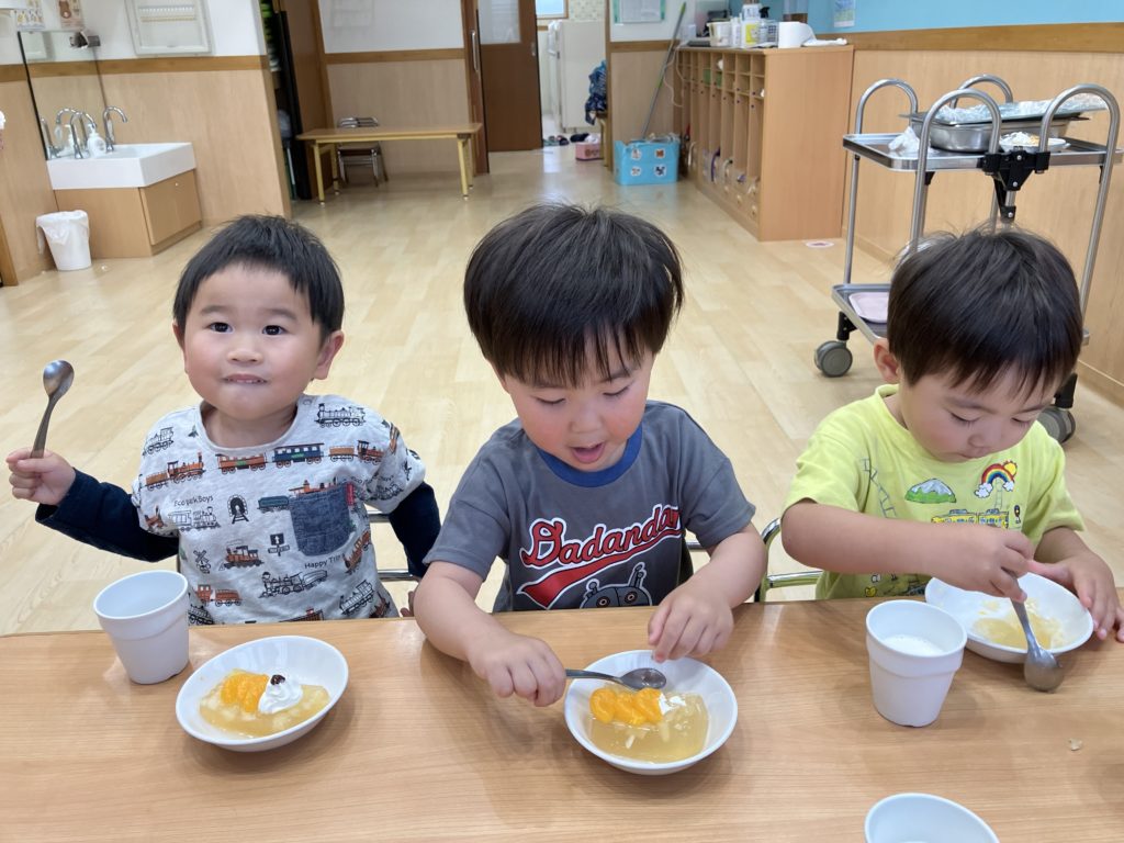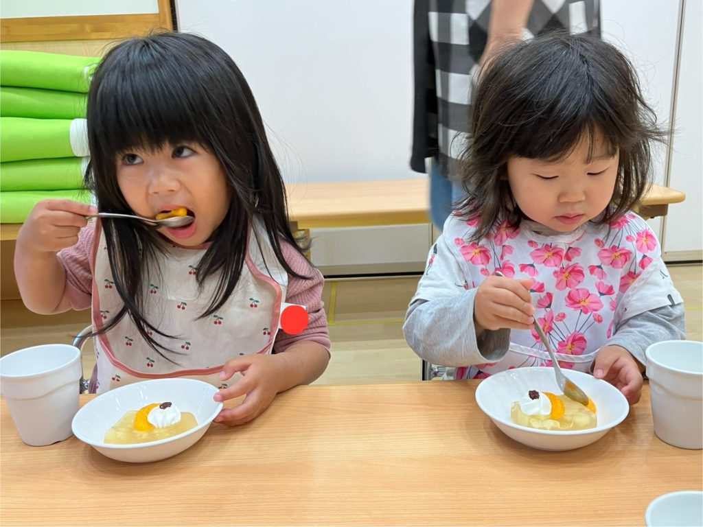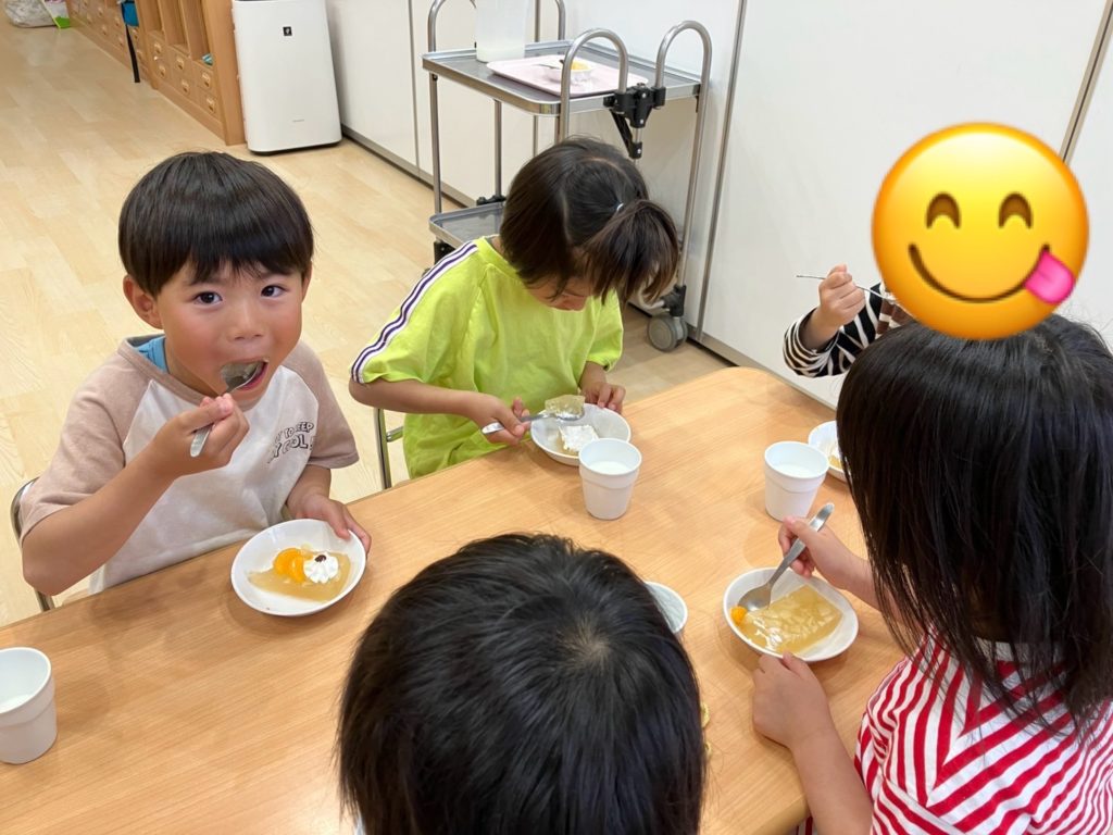 口周りにクリームを付けたりと、わんぱくな子どもたち☺︎