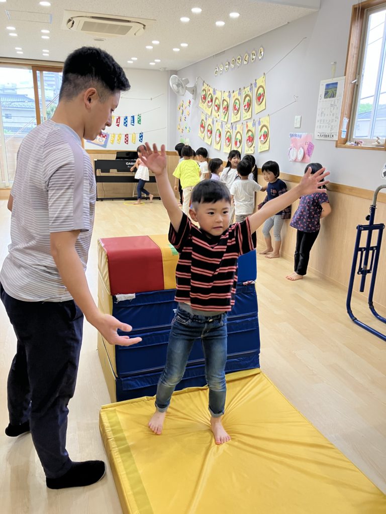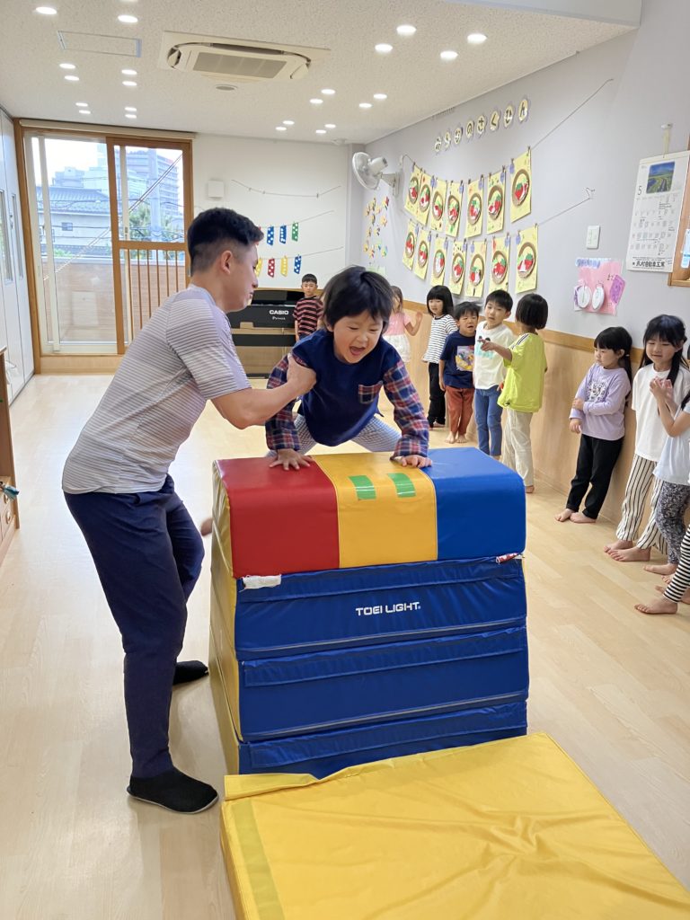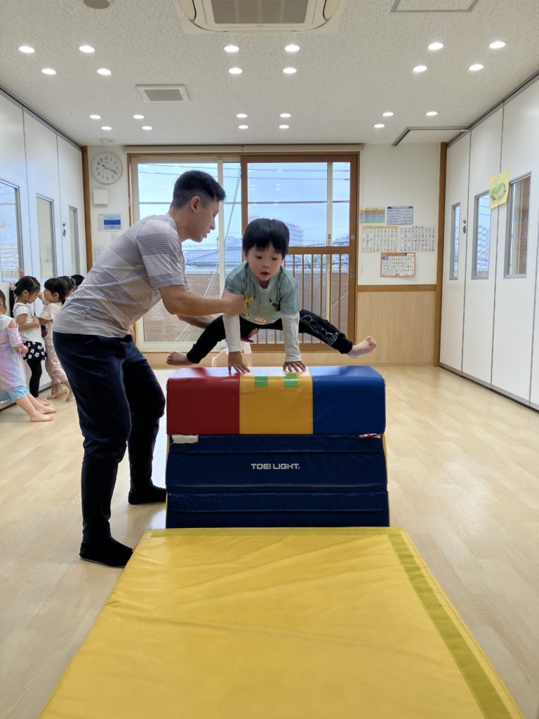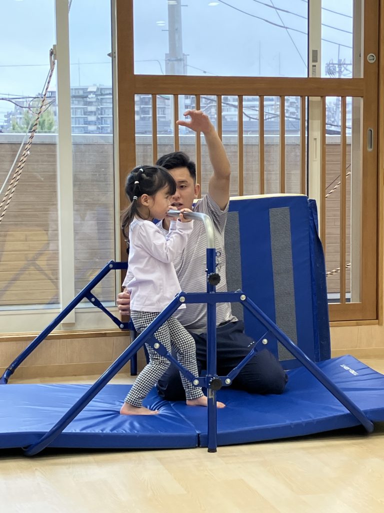 先生にもお手伝いしてもらいながら上手に鉄棒できました👏🏼