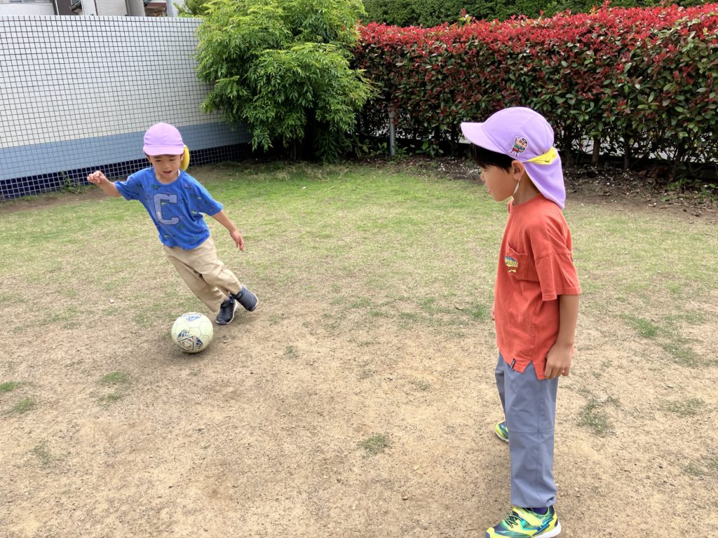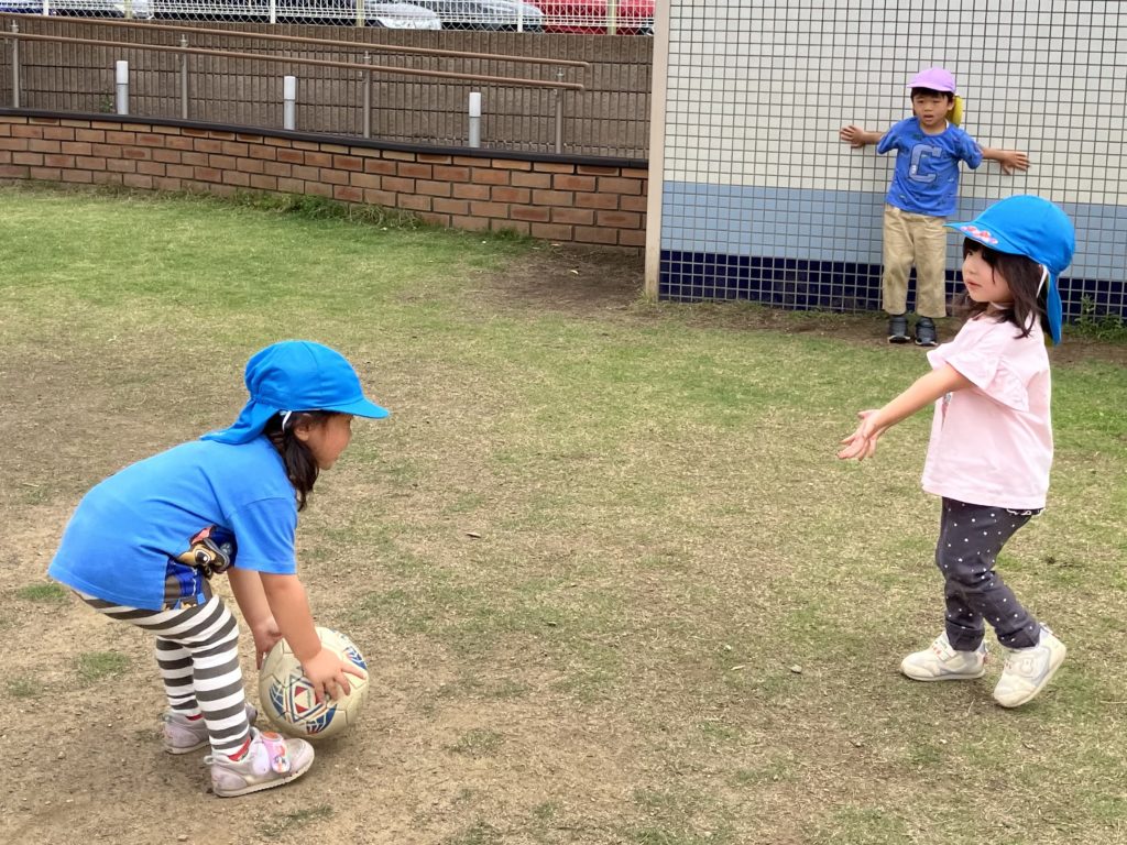 今日の園庭ではうみ組とゆめ組が仲良く遊んでいました♬