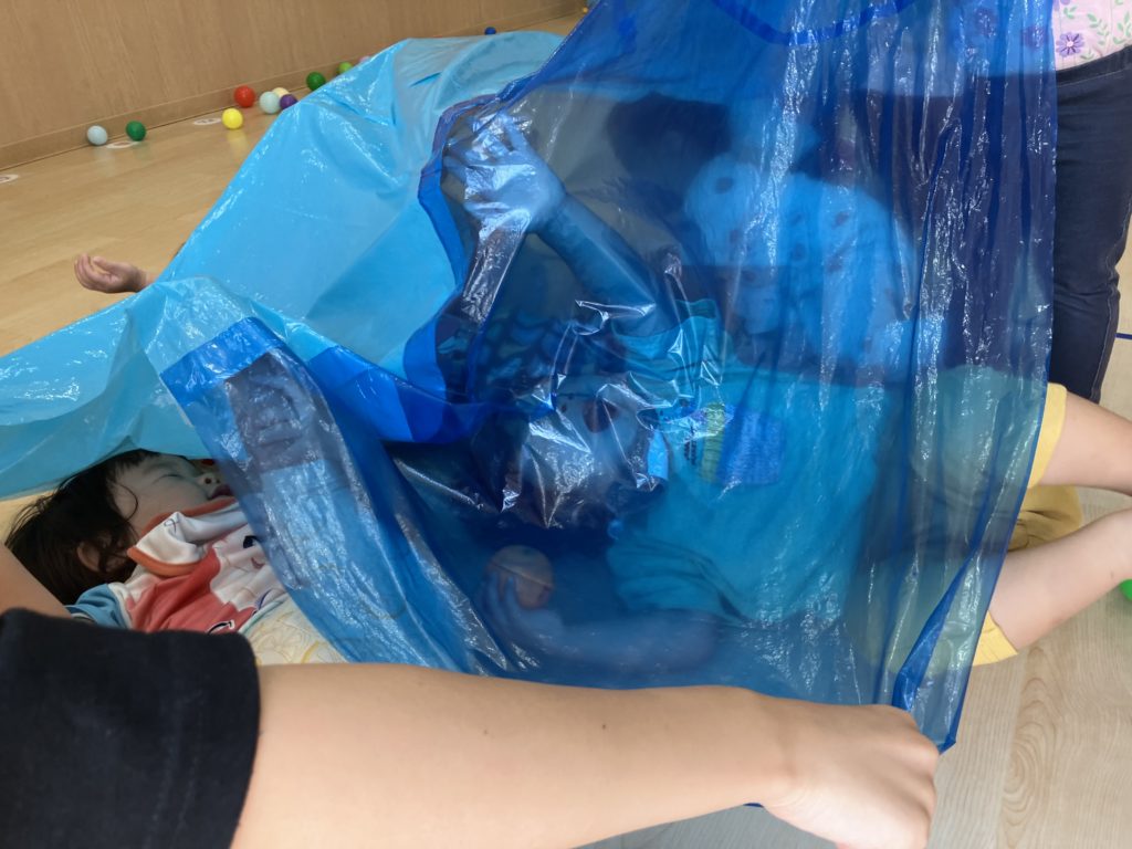 今日は、お兄さんお姉さんの真似っこをしてパラバルーンごっこをしました🍀