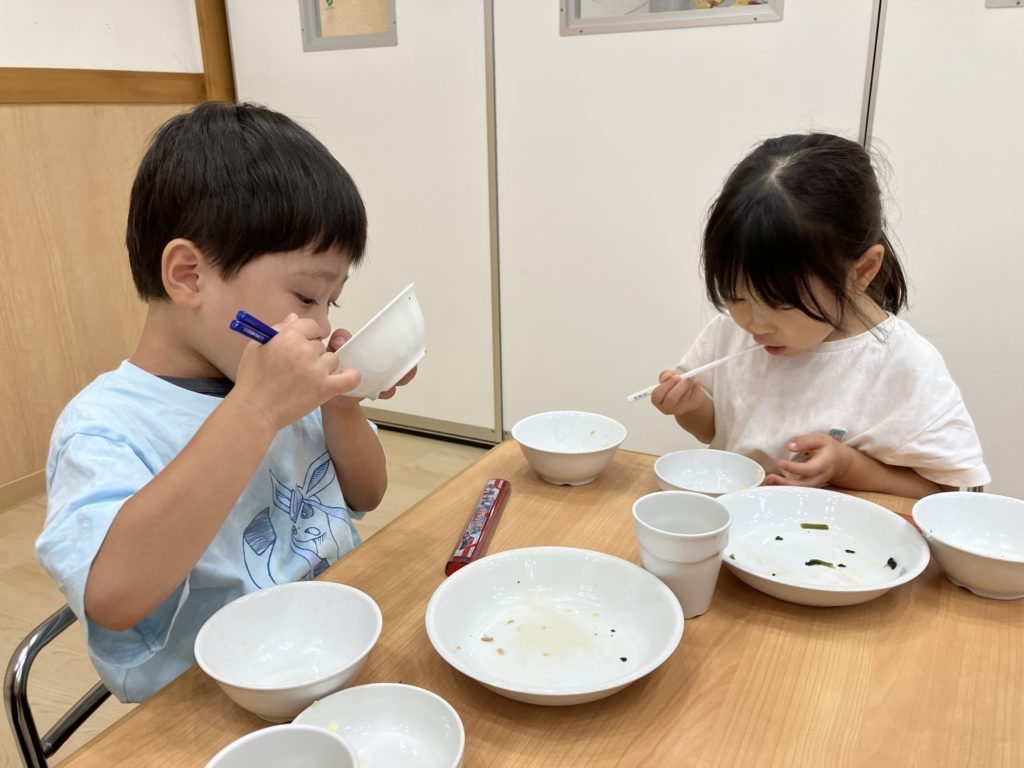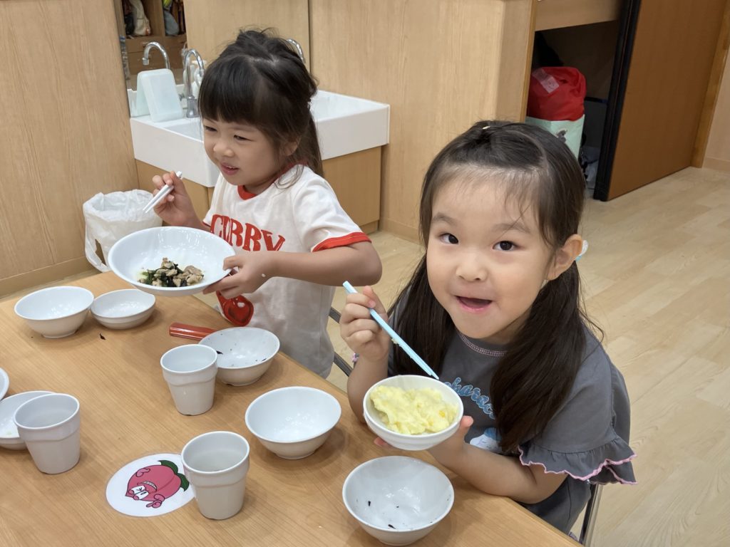 ご飯粒も残さないように、集まれもとっても上手なひかり組の子どもたちでした💞