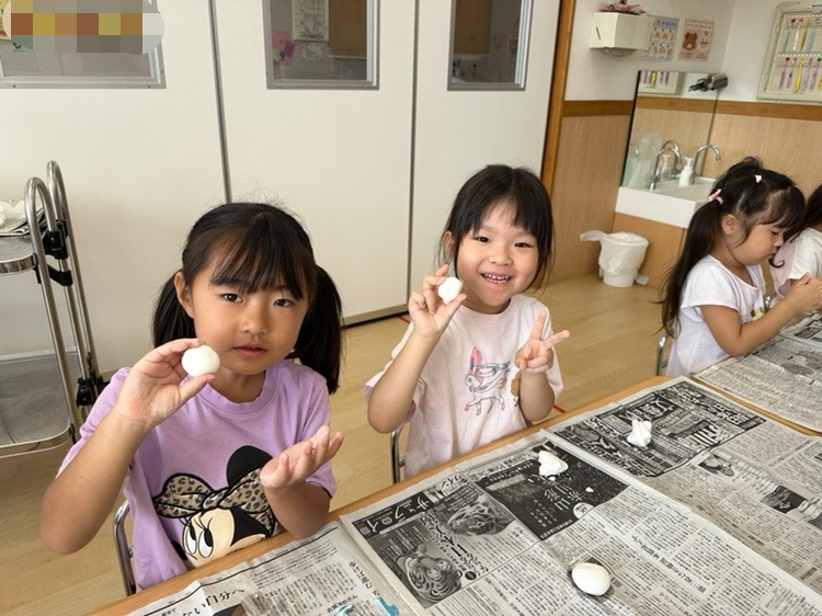 クラスによって個性豊かな形のお月見団子が完成しました💫