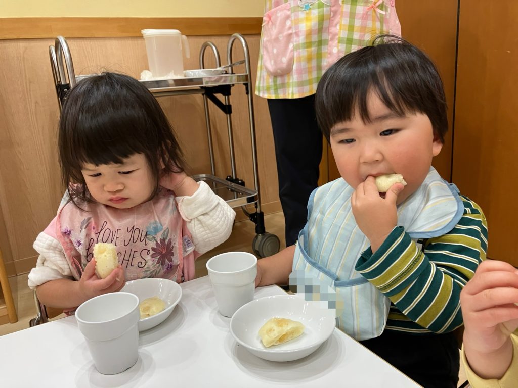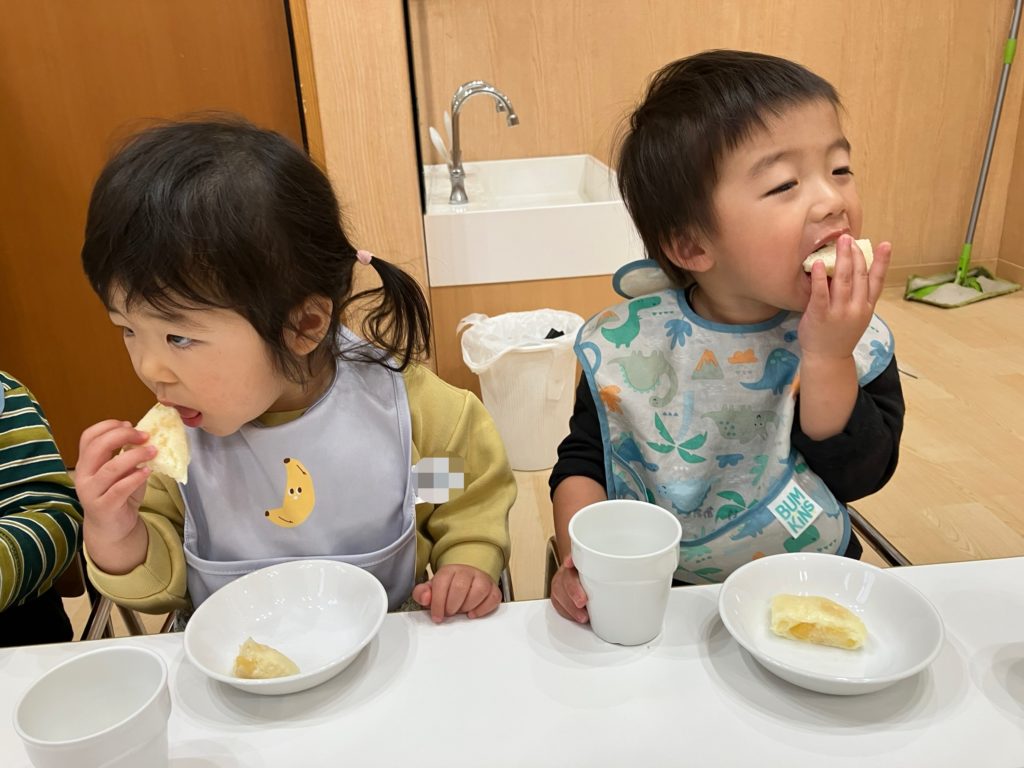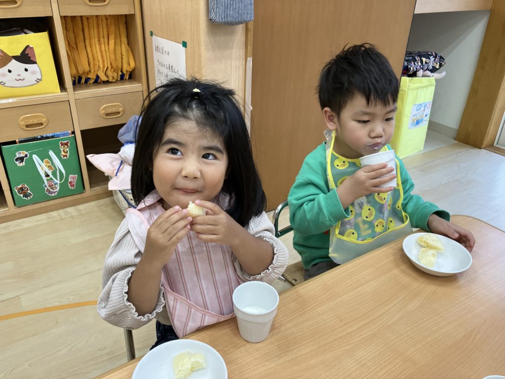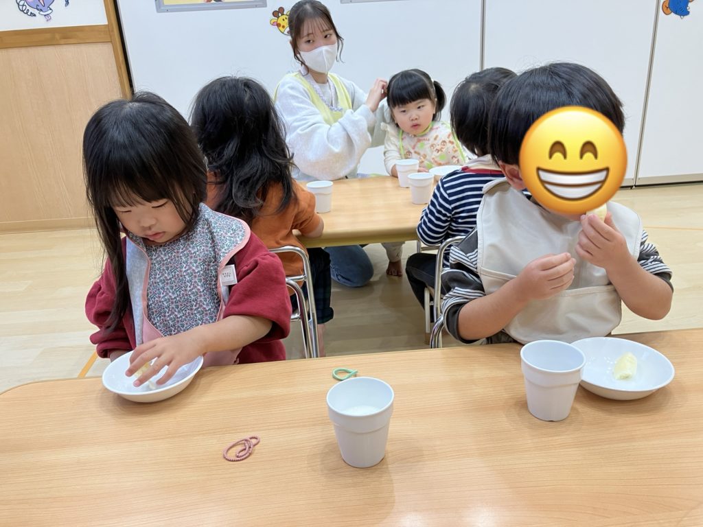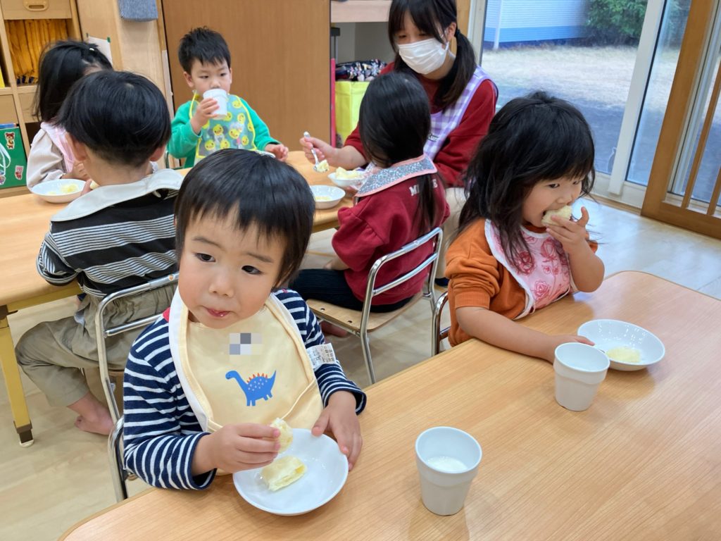 大きな口で頬張ってニコニコな子どもたちです🎶