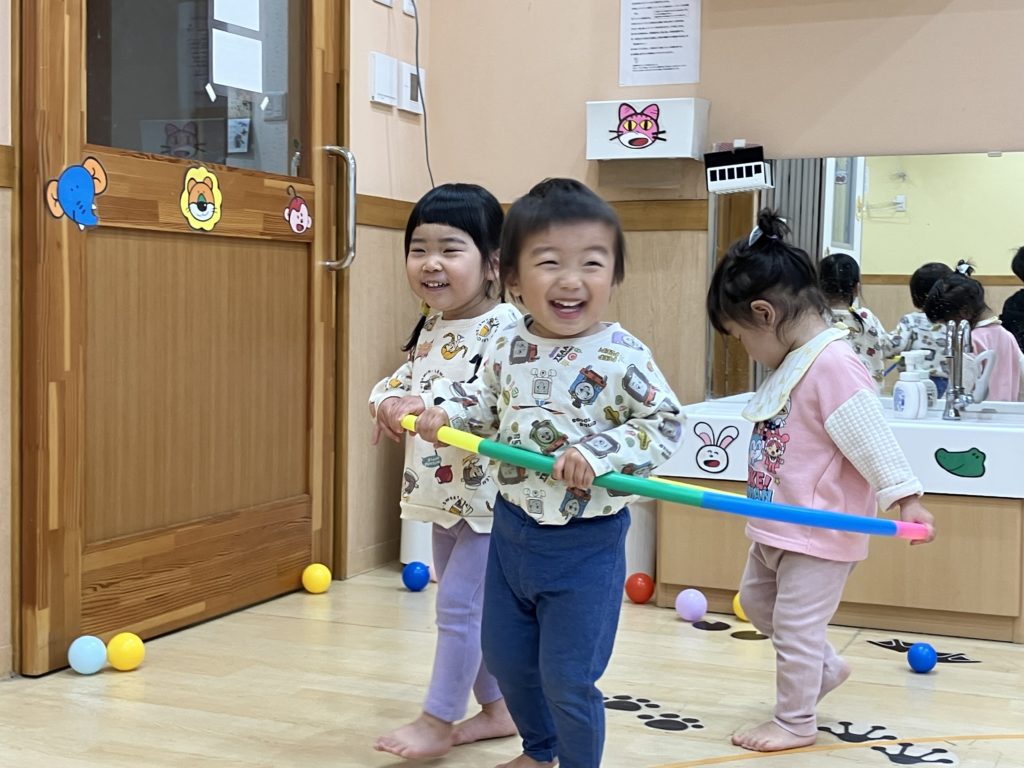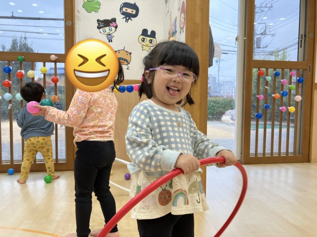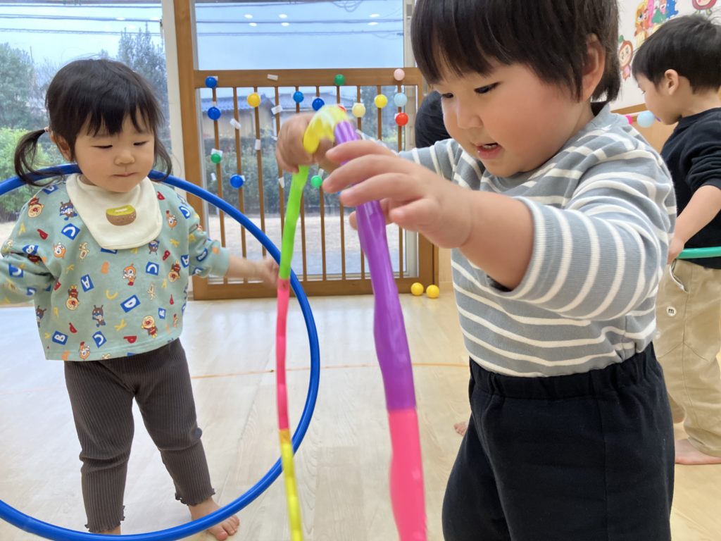 フープで電車ごっこをしたり、ボールで的当てをしたりと、いろいろな遊び方で楽しんでいました🎈