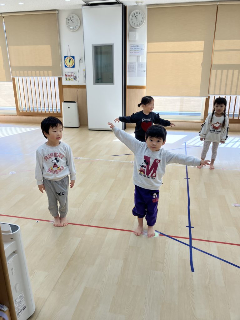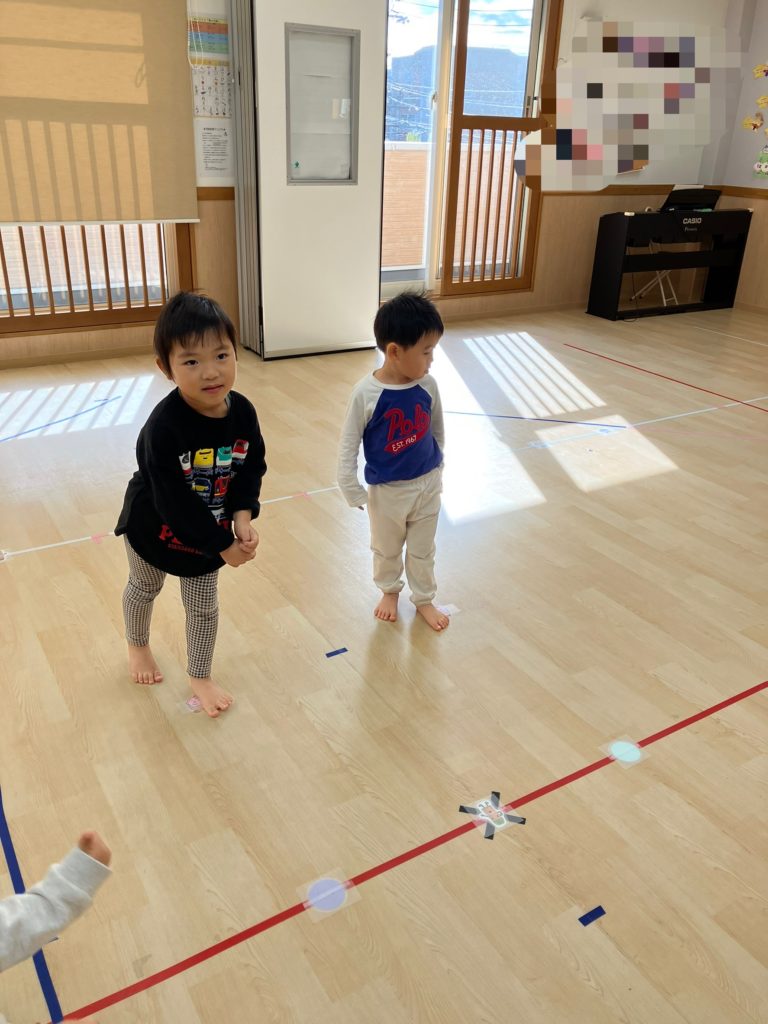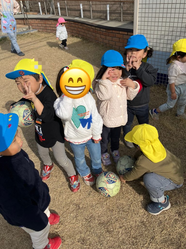 朝の準備が終わってすぐに、うみ組のお友だちは園庭に出発💨