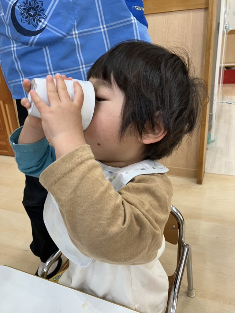 おやつを食べた後はお口をふいて、袋にしまいます。みんな上手にできるようになりました!その後は、ゆっくりみんなで遊ぶ時間です☺仲良く遊んでお家の人のお迎えを待ってます♪
