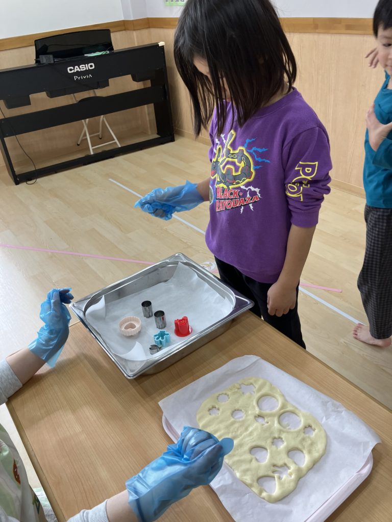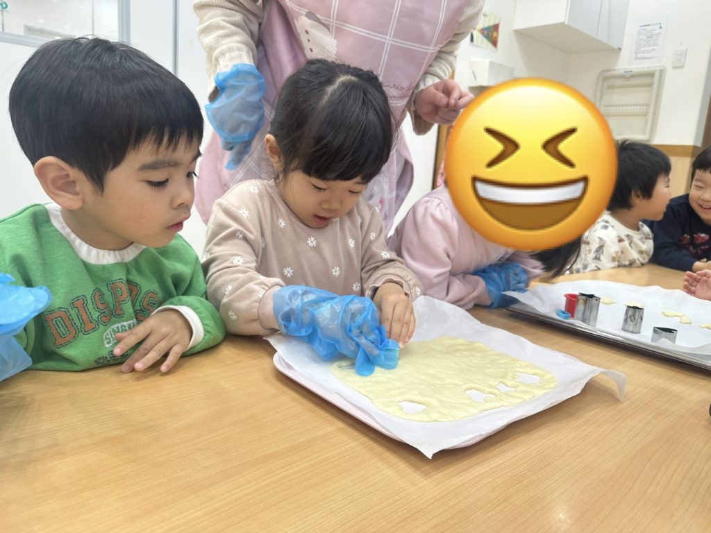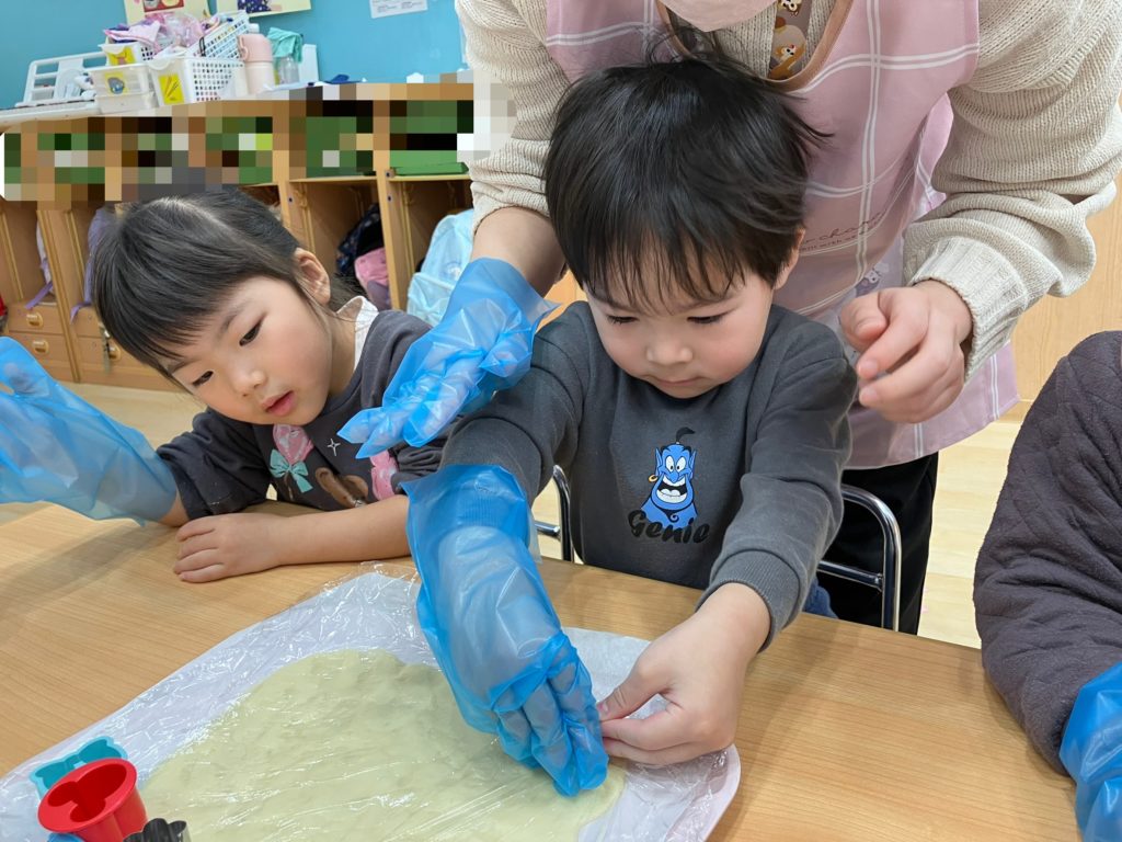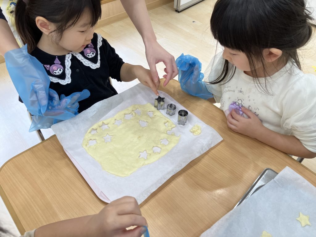 今日は、うみ組ひかり組ゆめ組のお友だちがクッキーの型抜きに挑戦⭐️