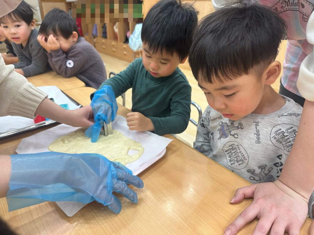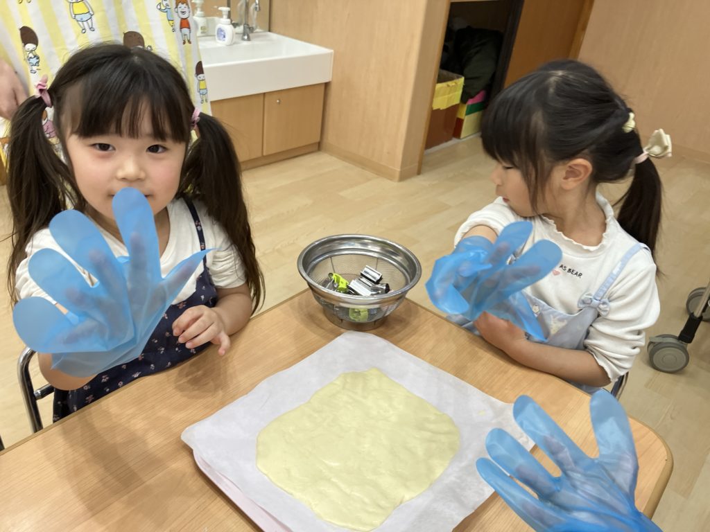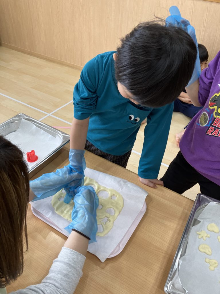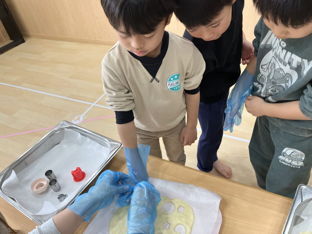 今日は、うみ組ひかり組ゆめ組のお友だちがクッキーの型抜きに挑戦⭐️