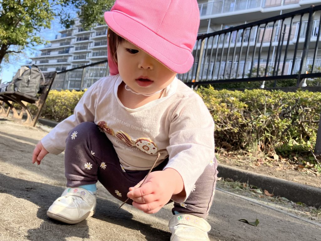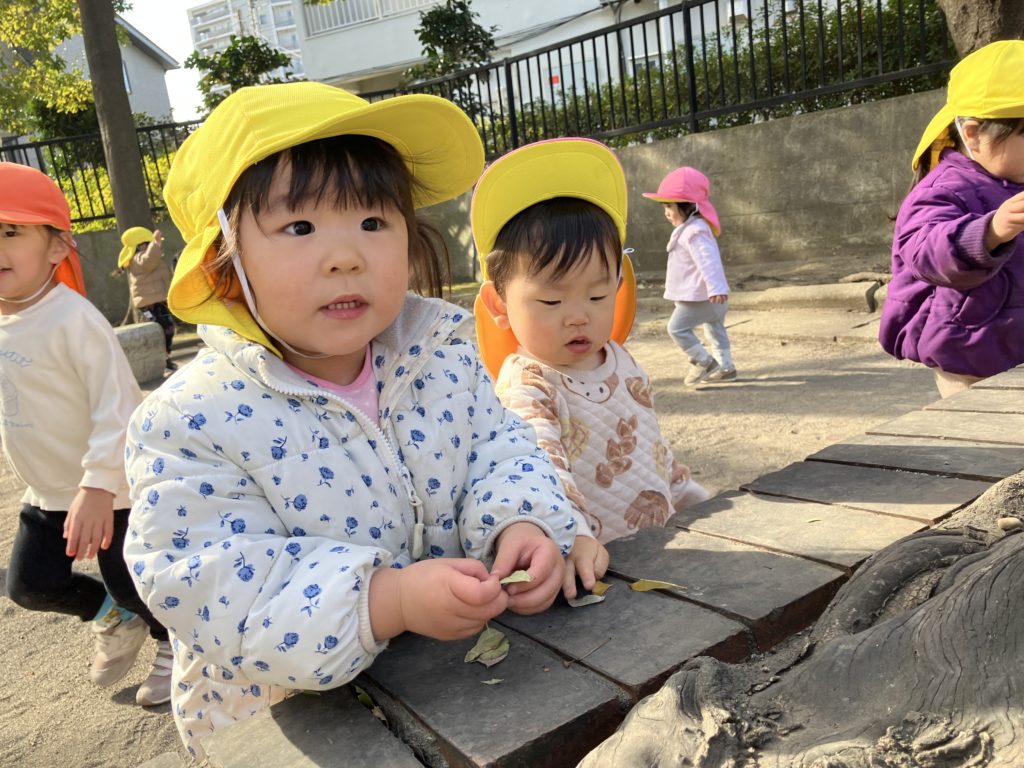 葉っぱや木の枝拾いをしたり、かくれんぼをしたり…