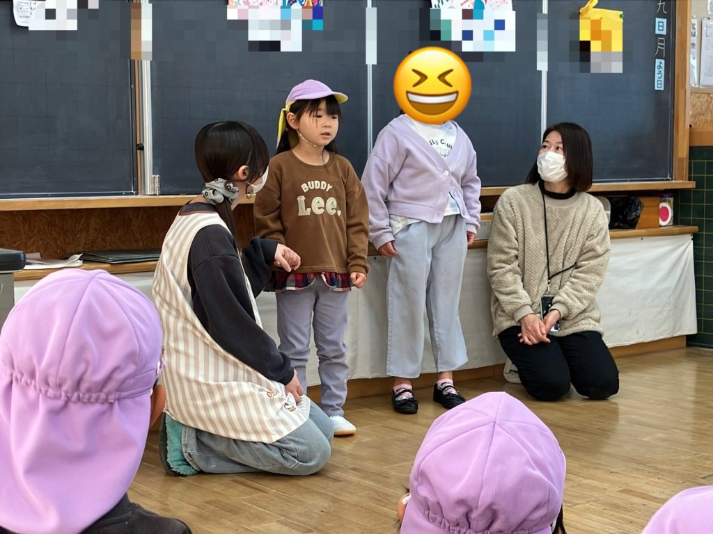 行く前はワクワクしている様子だった子どもたちですが、小学校に着くと少し緊張している表情をしていました🫣