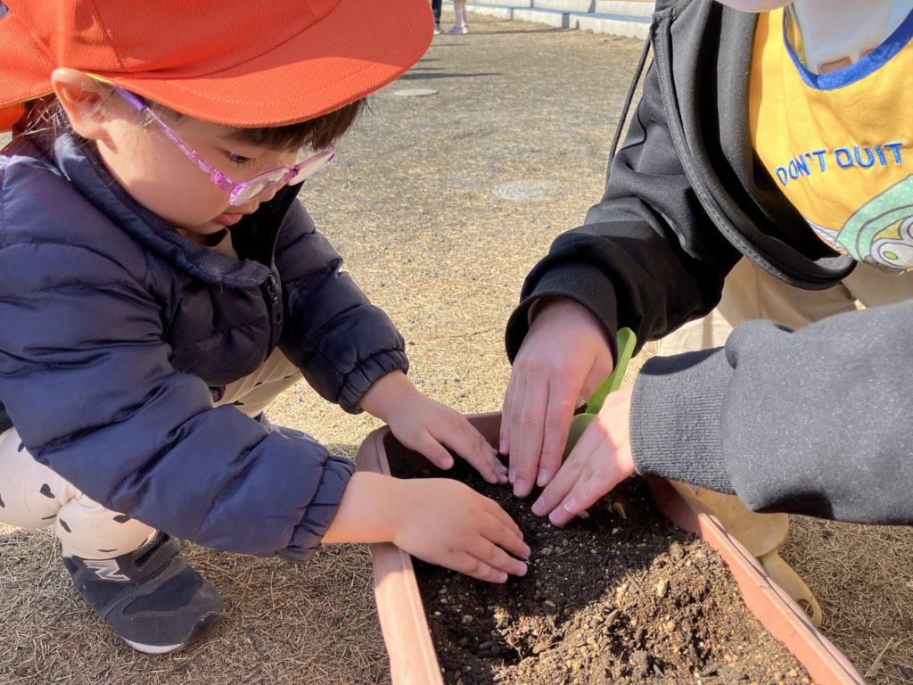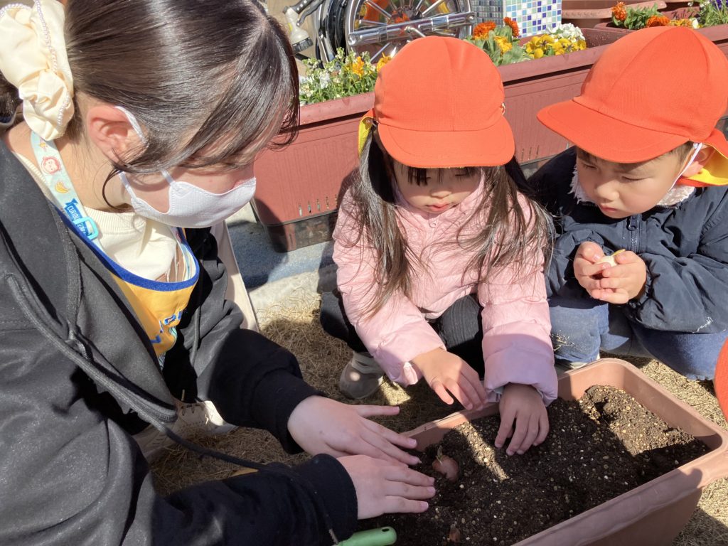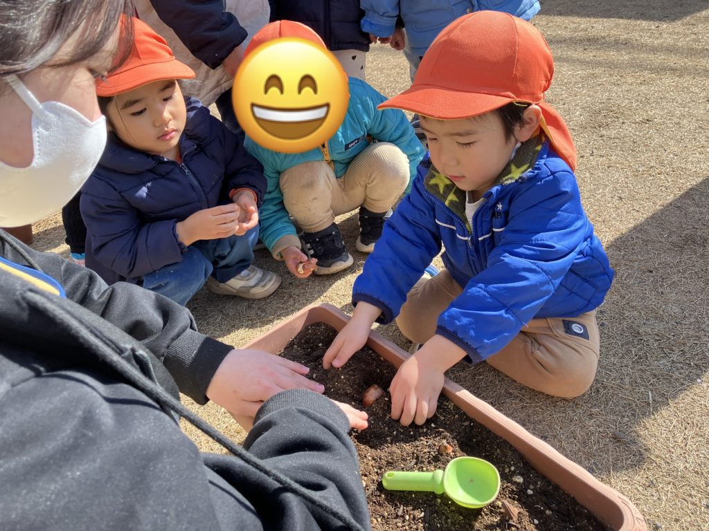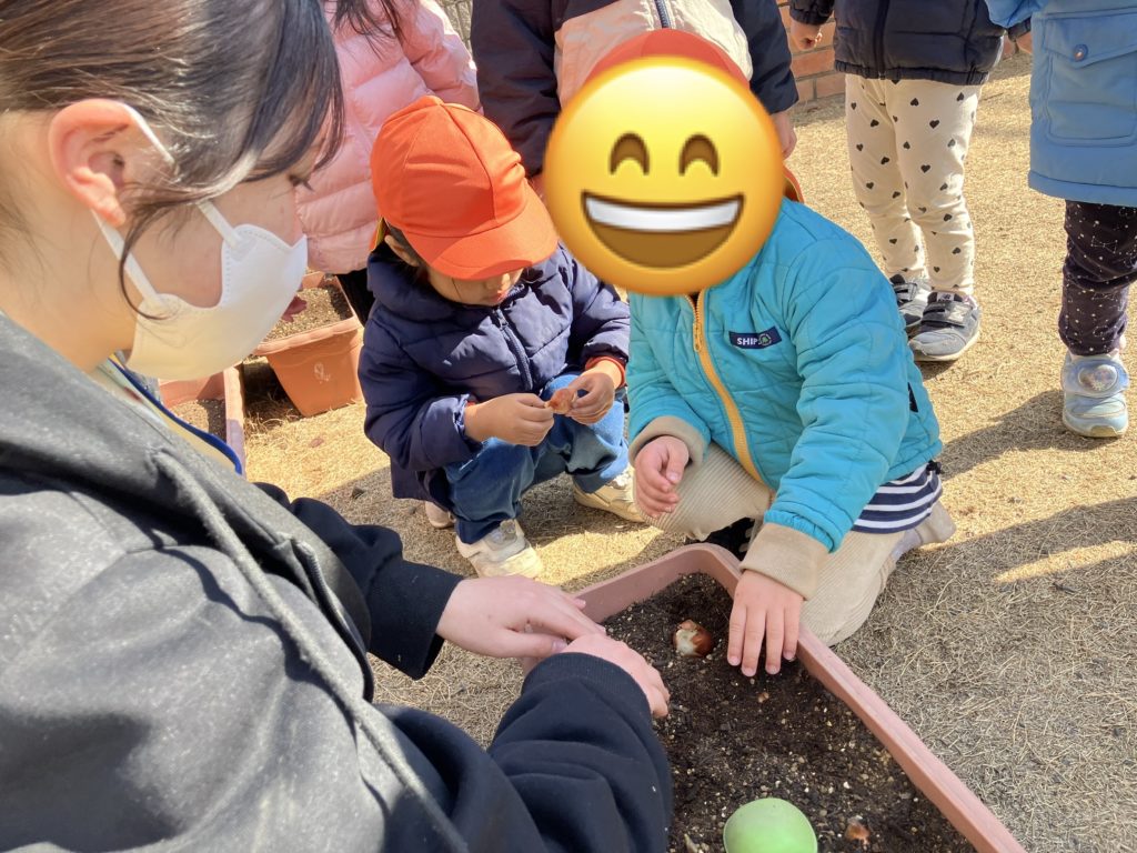 今日は、たいよう組のお友だちがチューリップの球根を植えてくれました❤︎