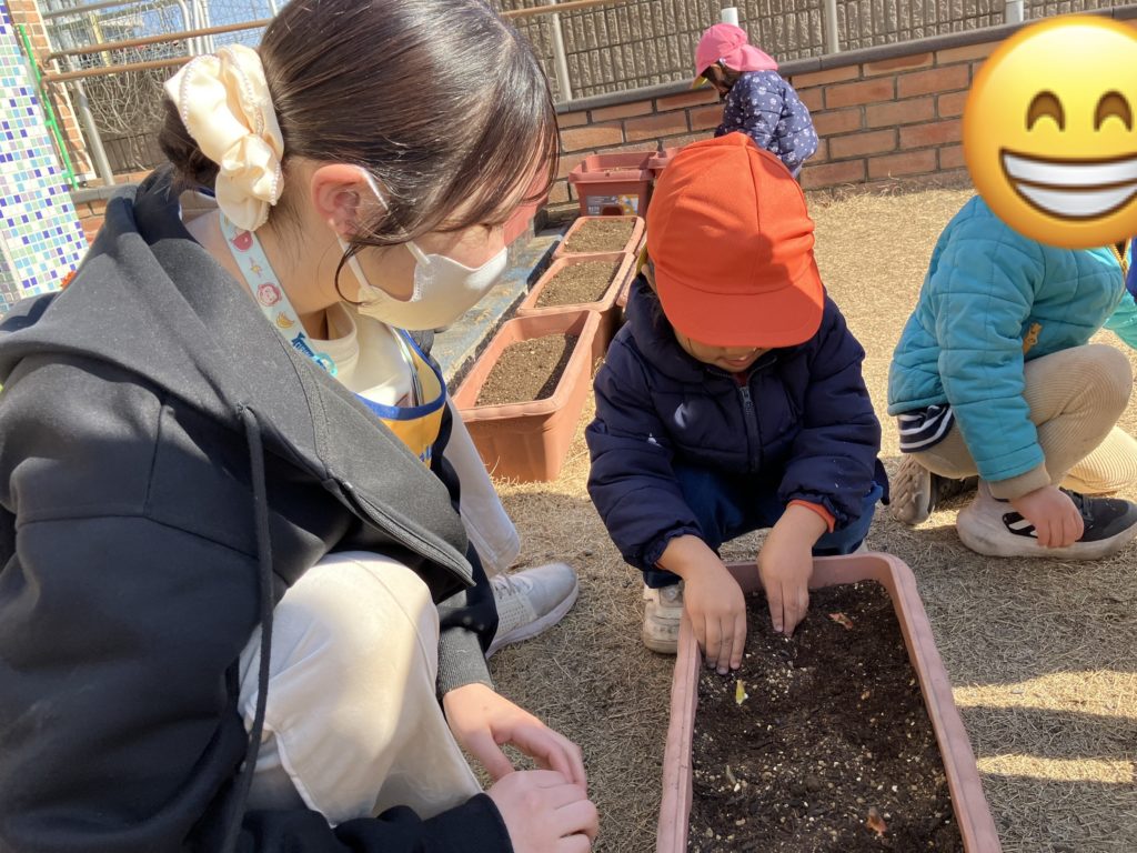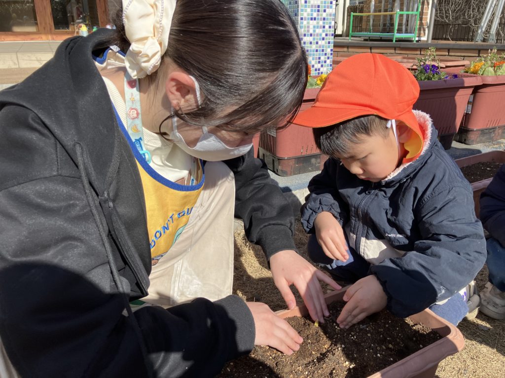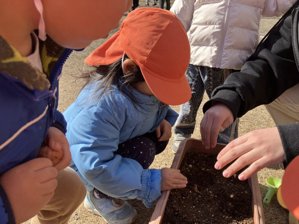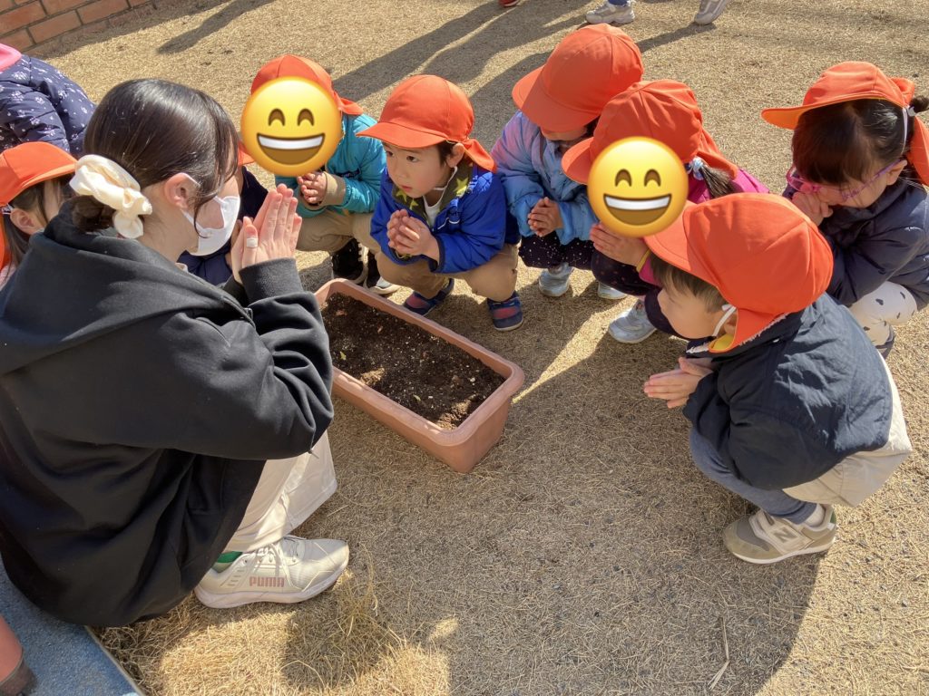 今日は、たいよう組のお友だちがチューリップの球根を植えてくれました❤︎