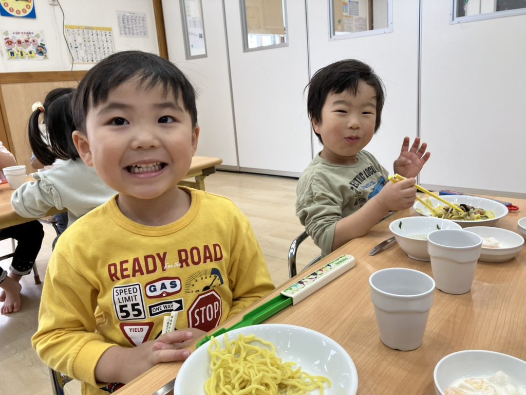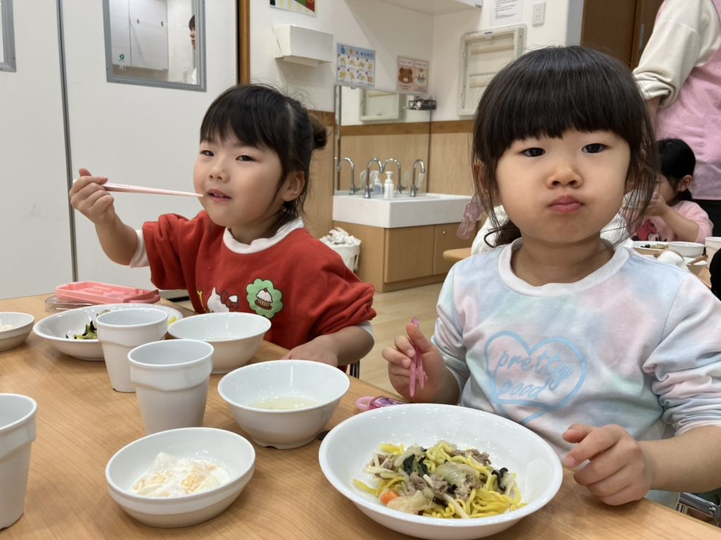 元気に遊んだ後は箸も頑張って焼きそばを食べました!おいしかったね!ごちそさまでした♡