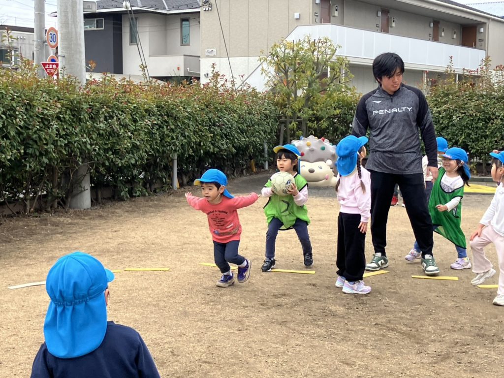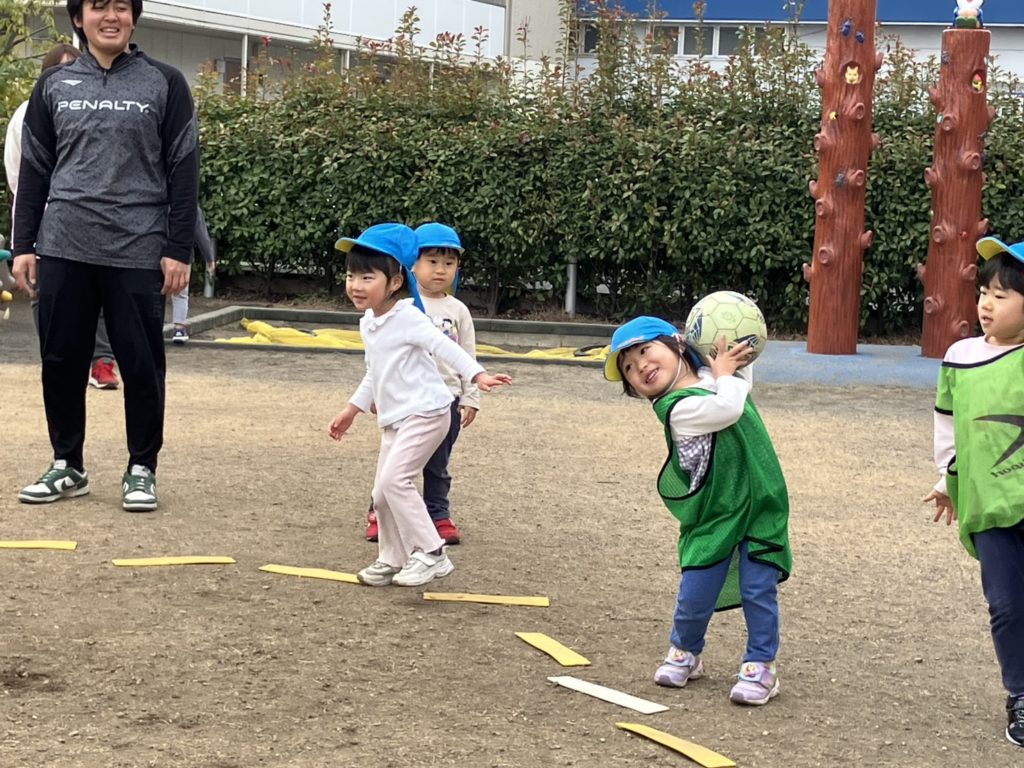 今日は幼児組の正課体育がありました!外は少し寒かったですが、動くとすぐ暑くなり、上着いらずで元気に遊んでいました♪