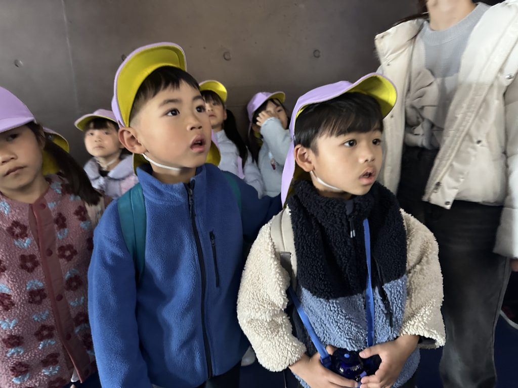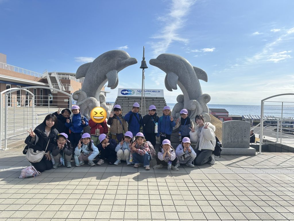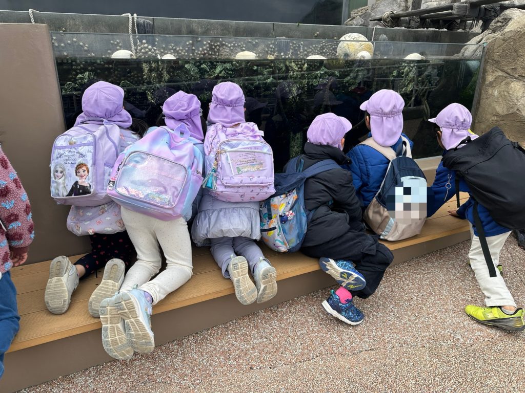 到着前のバスで海が見えたり、遠足のしおりに書いてある水族館の外観が見えるとおおはしゃぎでした😸