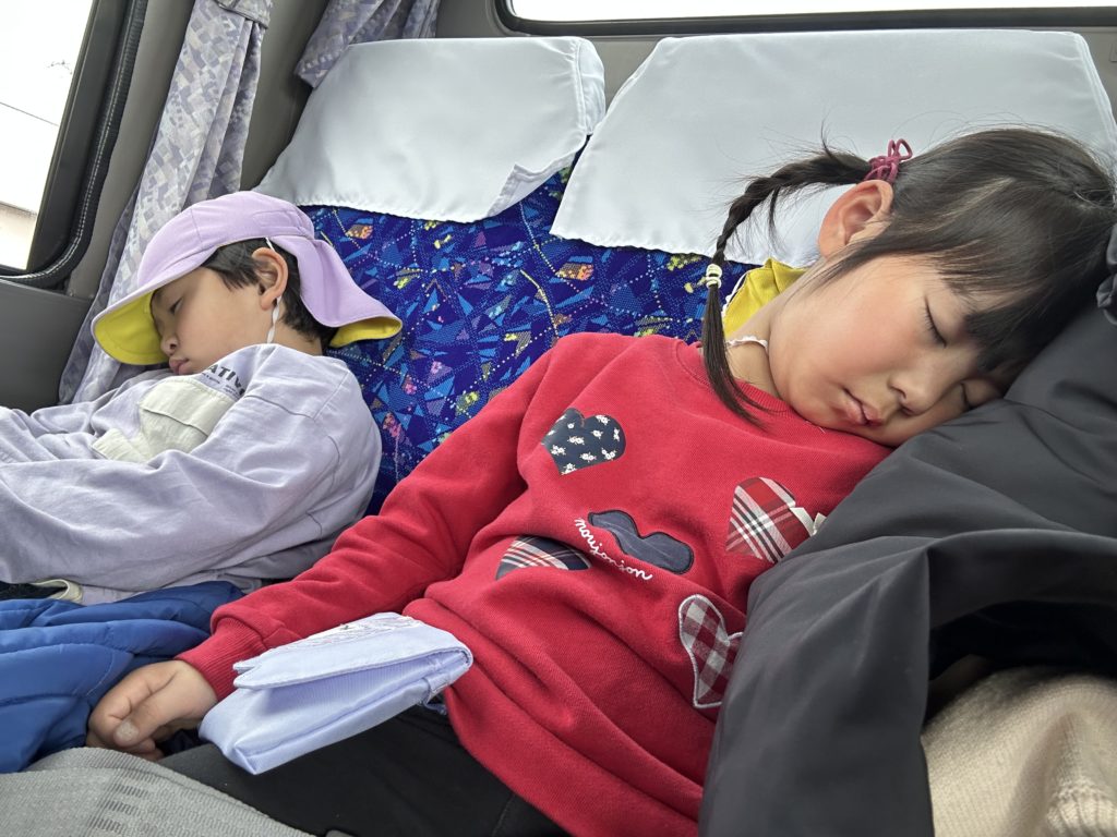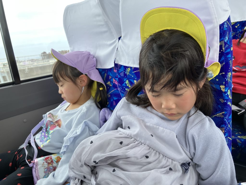 たくさんはしゃいで、帰りのバスではぐっすり眠るお友達も…😴