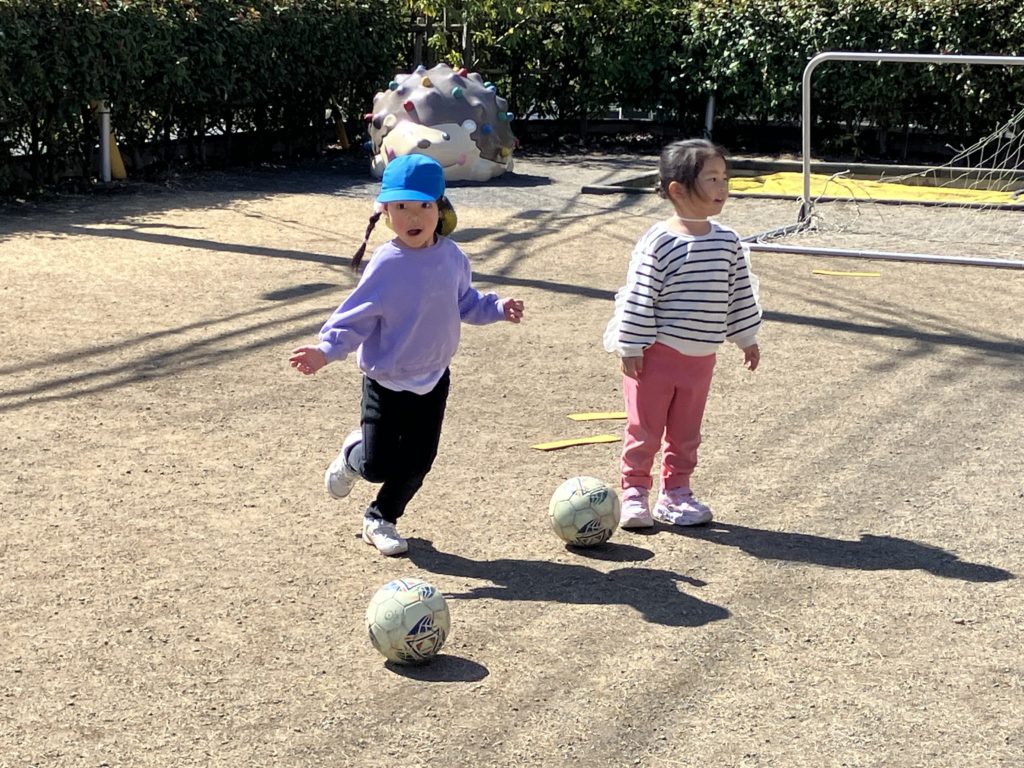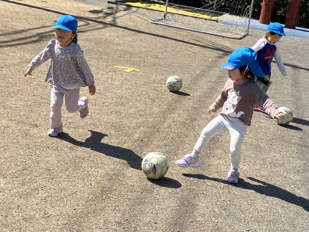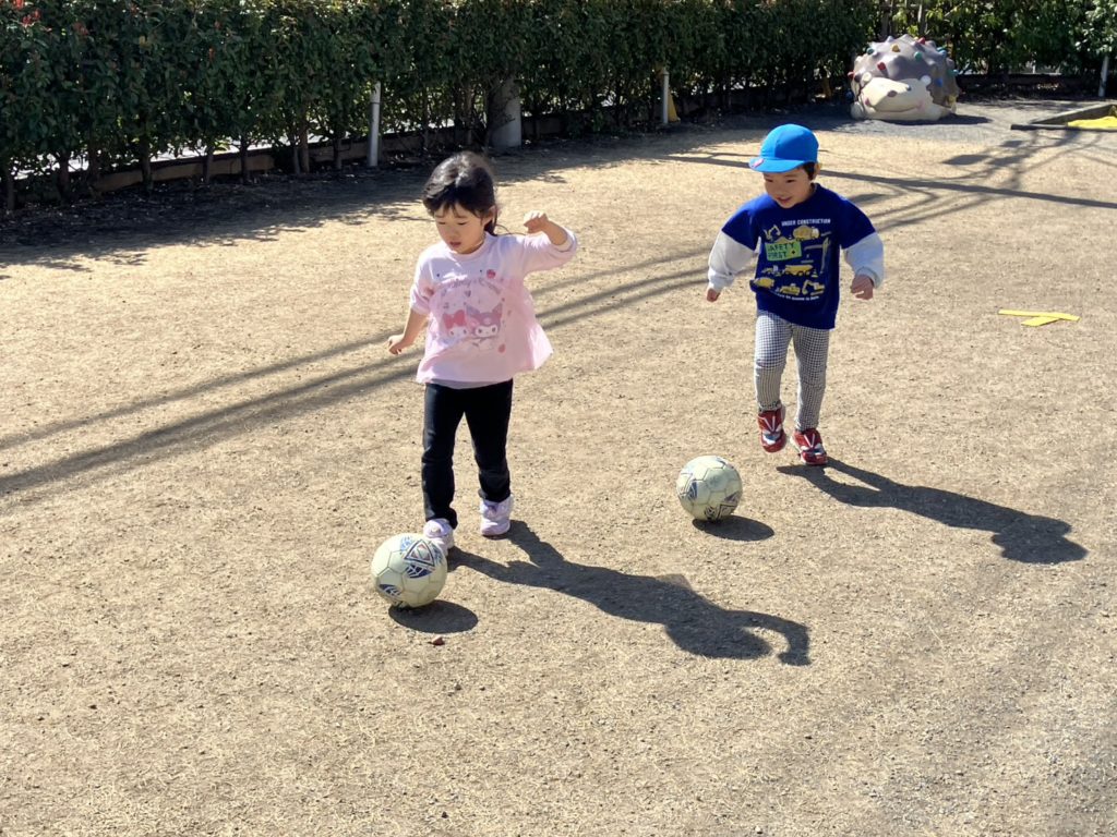 今日は正課体育でサッカーをしました!少しずつボールを上手に足で止めたり蹴ったりできるようになりました☺これからも楽しく身体を動かしていこうね♪