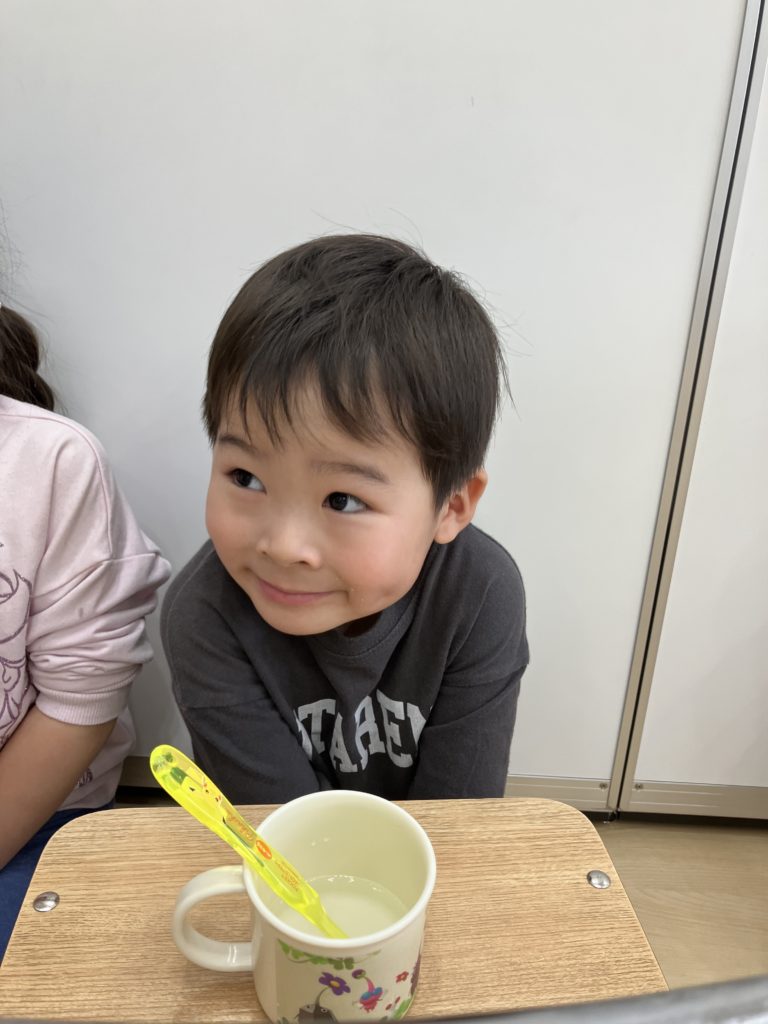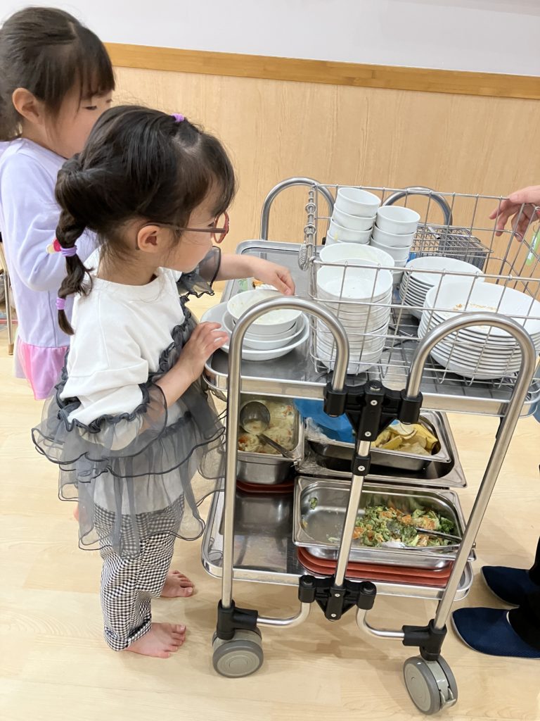 上のクラスは、給食が終わったら食器の後片付けです✨