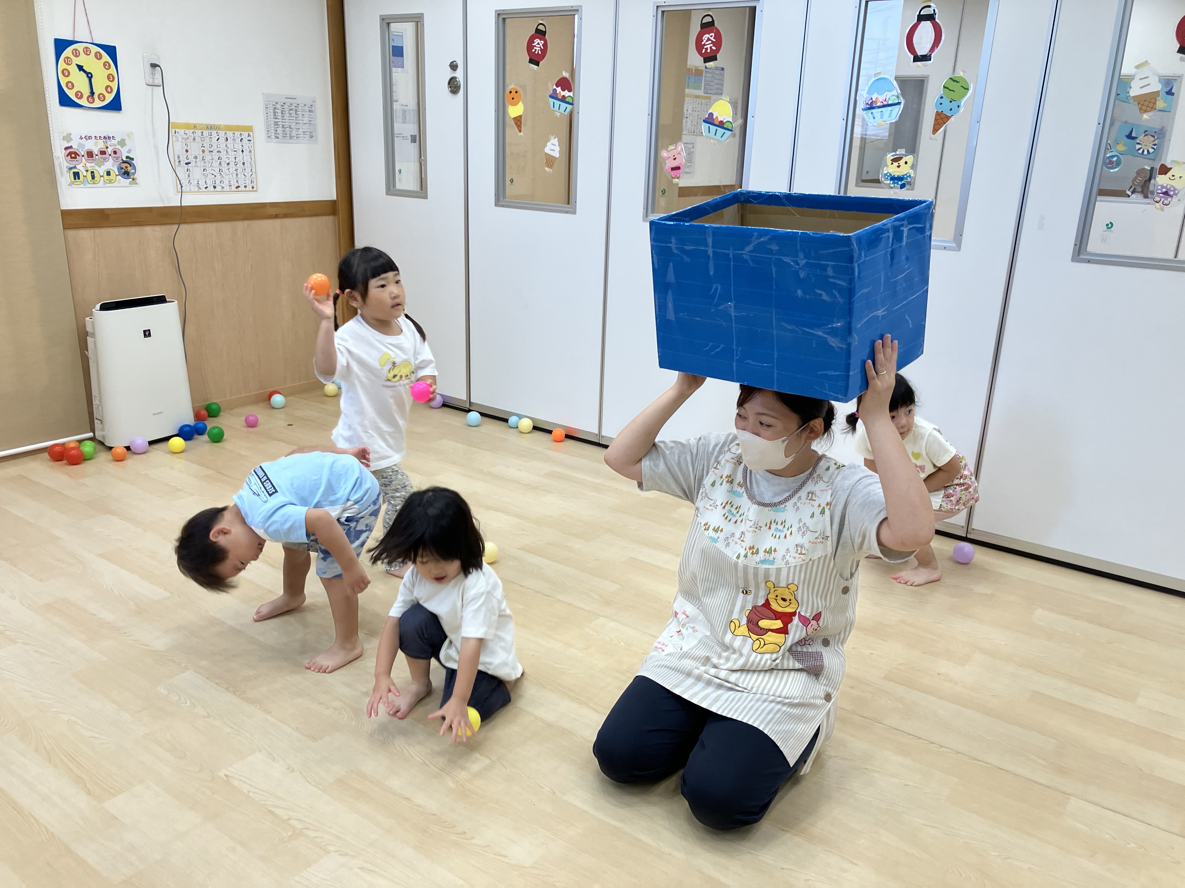 今日は暑かった為、お部屋で遊びました!うみ組さんは玉入れをしました! 箱の中に上手に入れられるかな?? ゆめ組さんは運動会に向けて練習を頑張っていましたよ! みんな真剣な顔で取り組