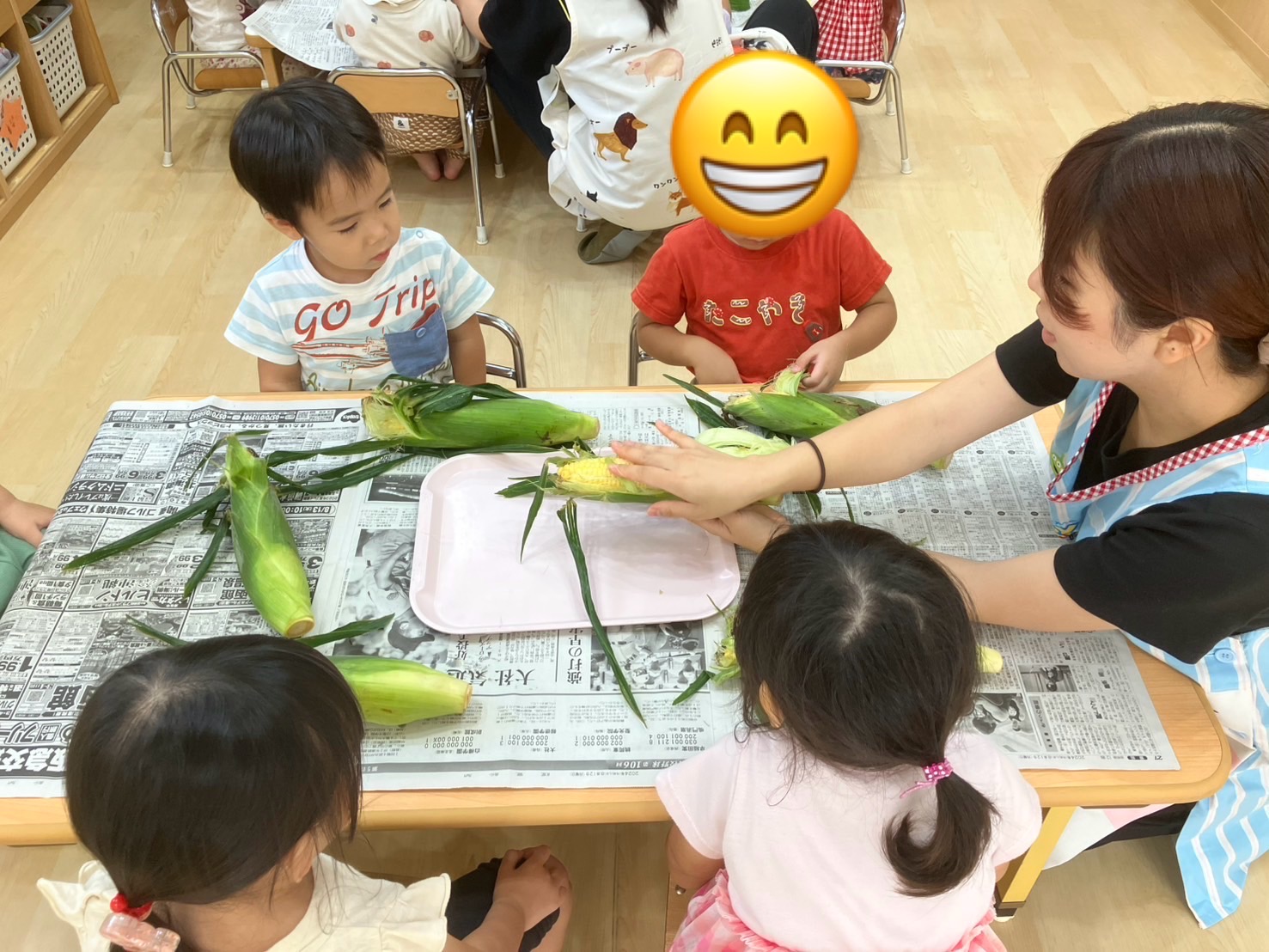 今日は、はな組ほし組たいよう組のお友だちがとうもろこしの皮剥きをしました👏🏼 まずは、どうやって剥くのか先生の […]