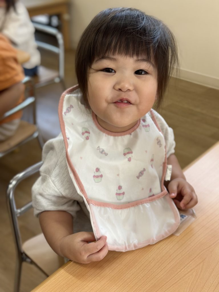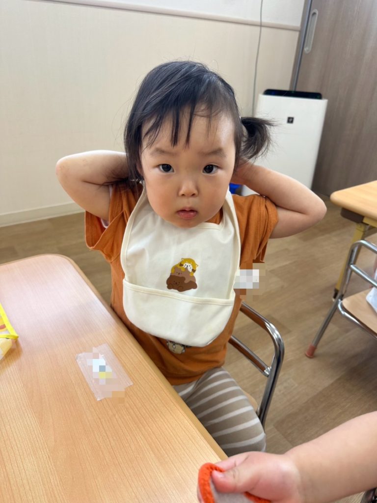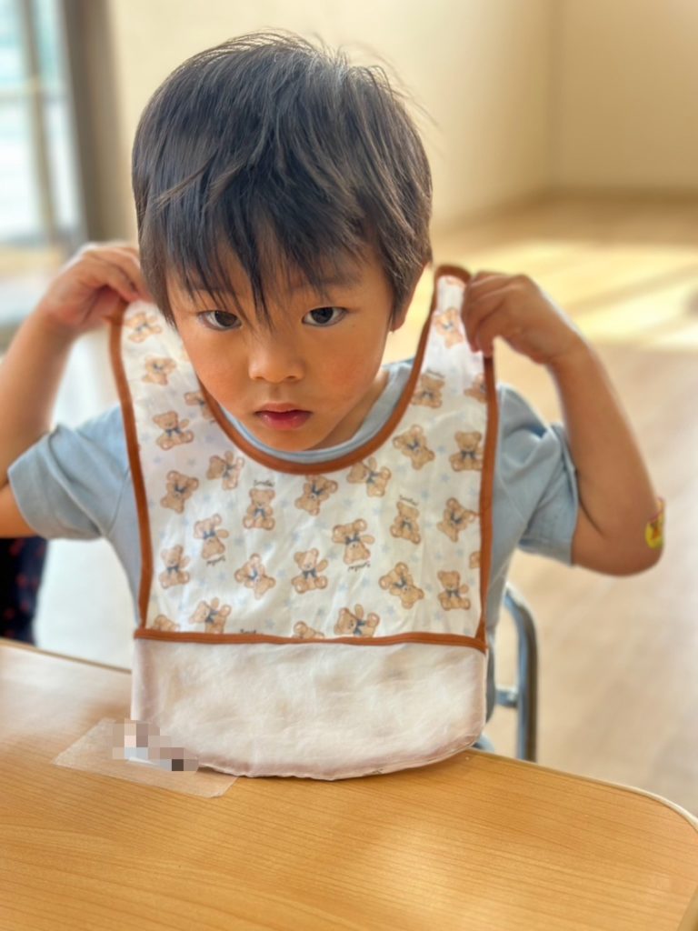 おやつの前には自分でエプロンをつけたり…