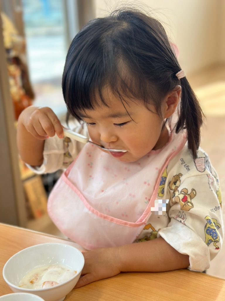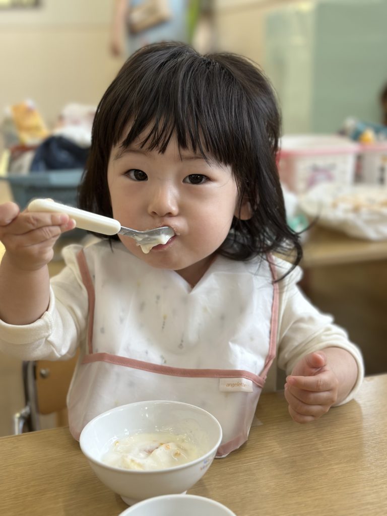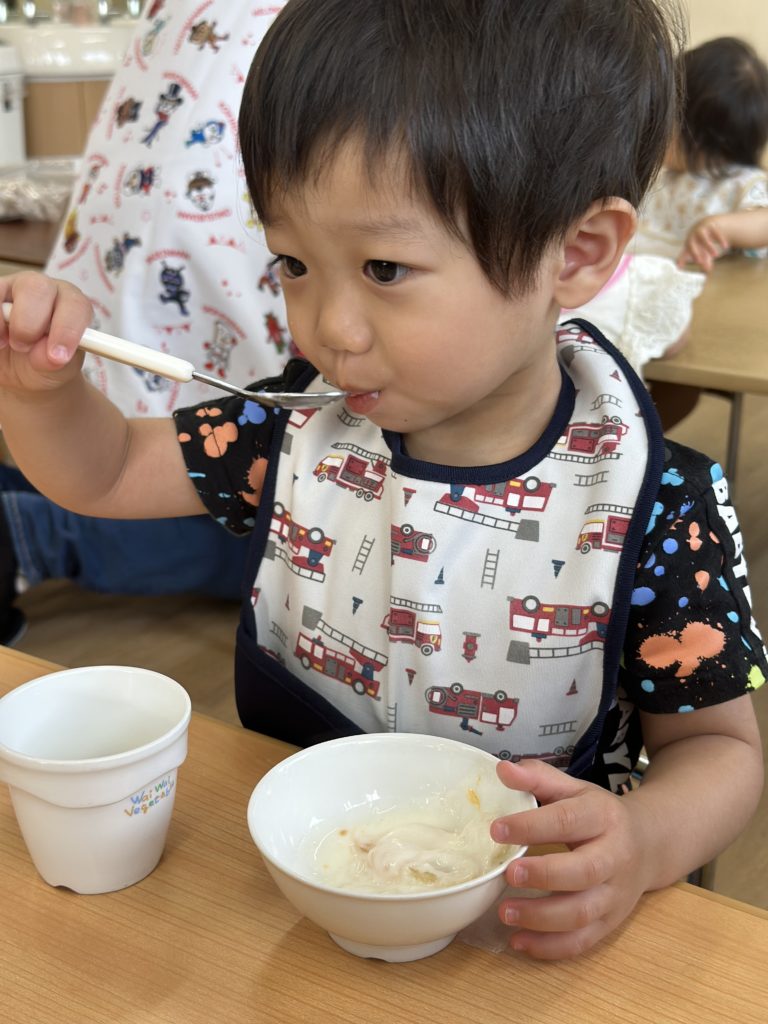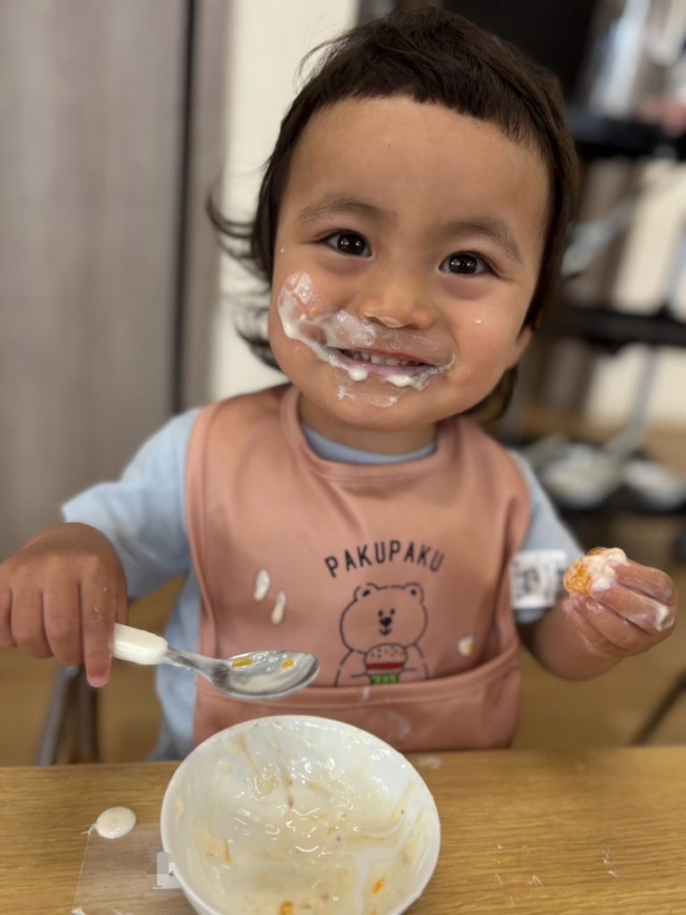 スプーンの持ち方も上手になってきて、美味しそうに食べていました😊