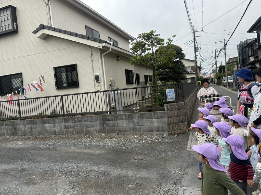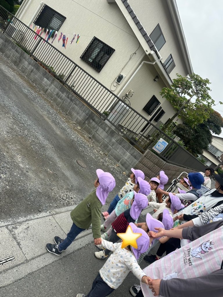 行く途中に、こいのぼり!あと少しでこどもの日会ですね🎏毎日一生懸命、歌を歌ってますよ🎶