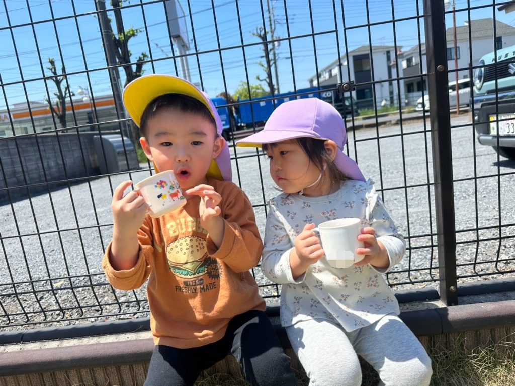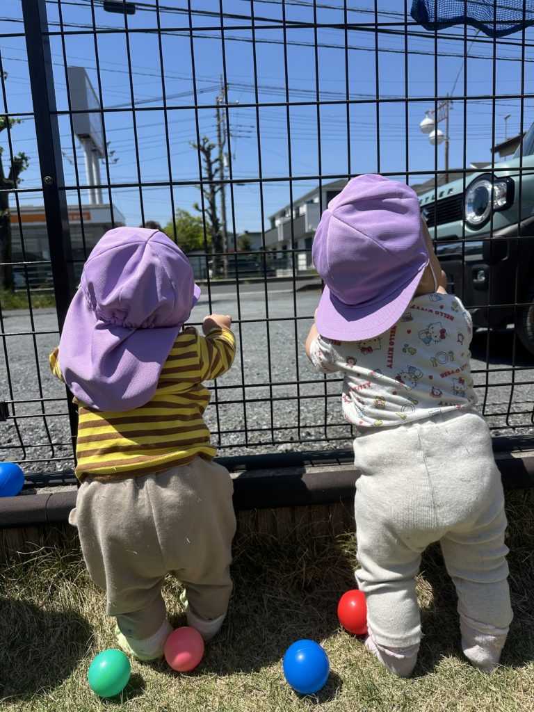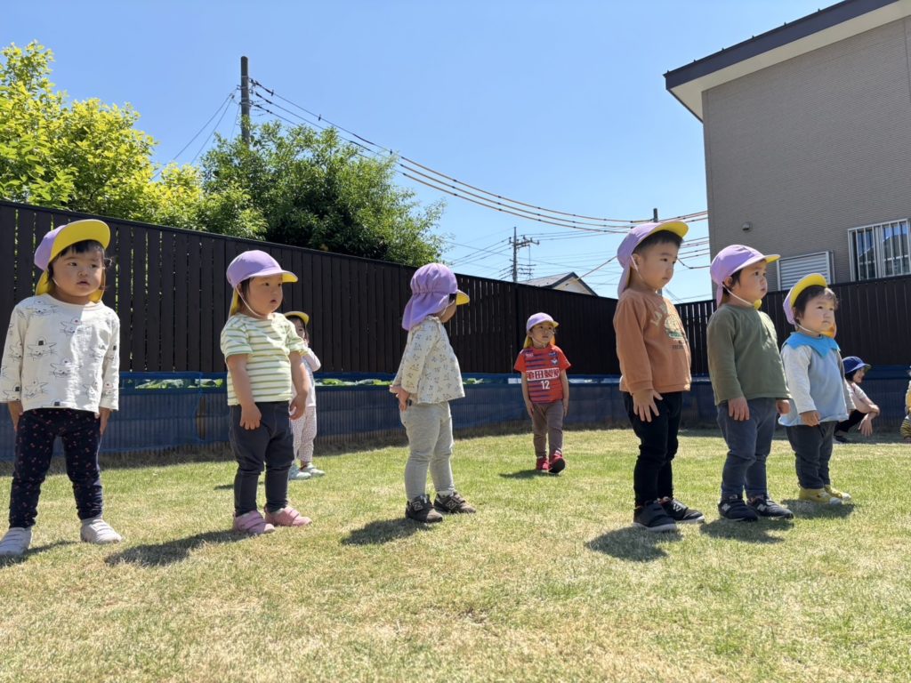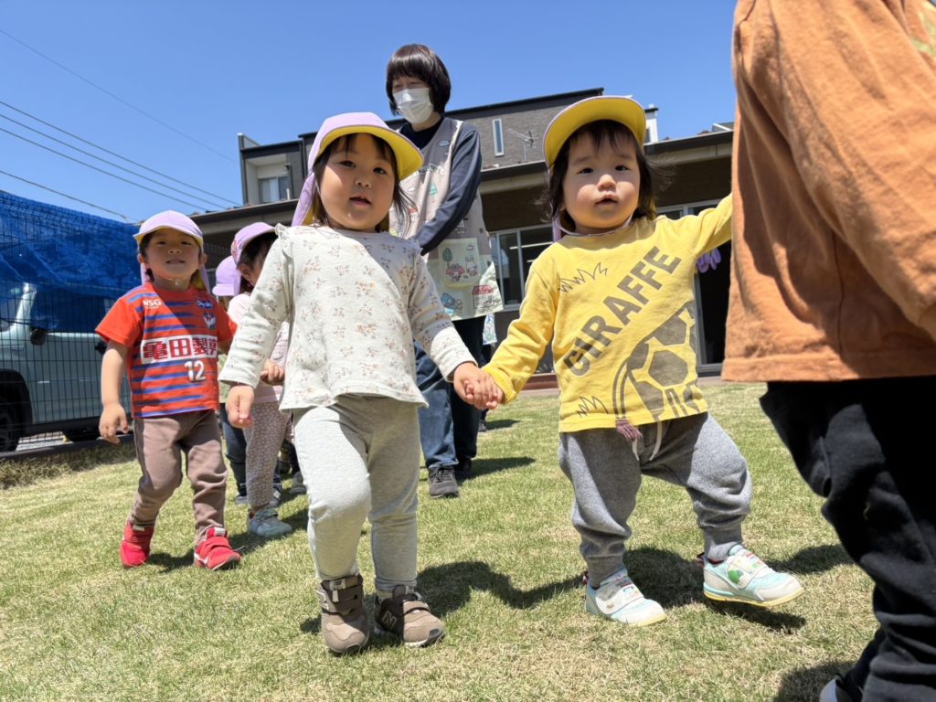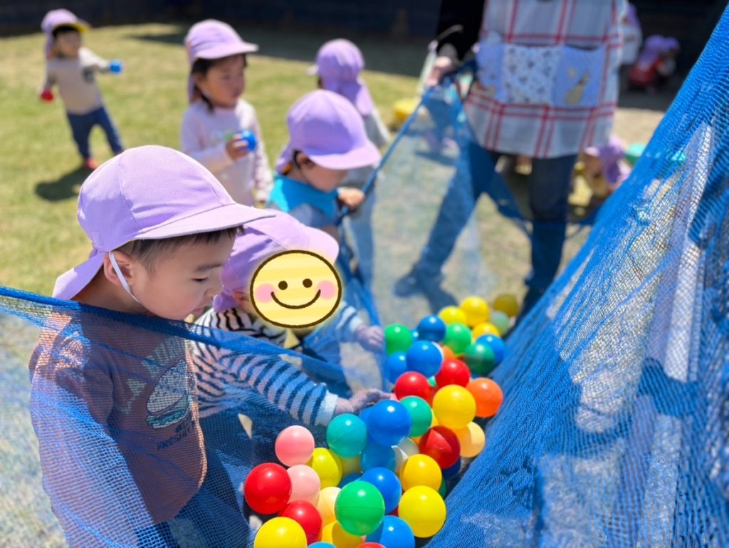 今日は朝から風が強かったのですが、少しおさまったので、園庭で遊びました!