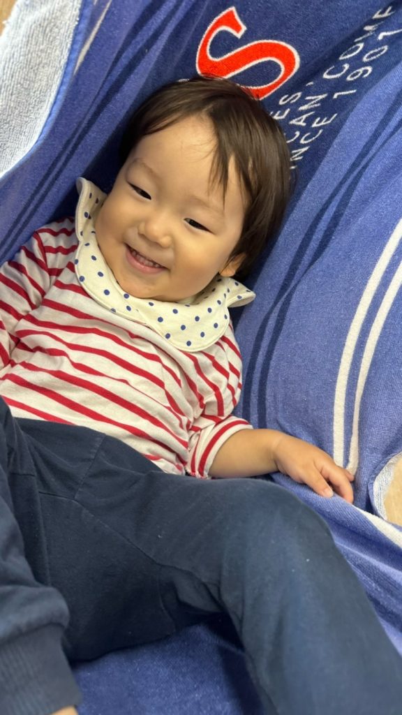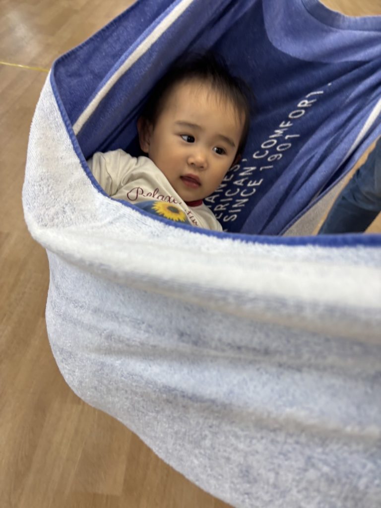 リズムの後は、バスタオルにゴロンと横になり、ゆりかご遊び♡