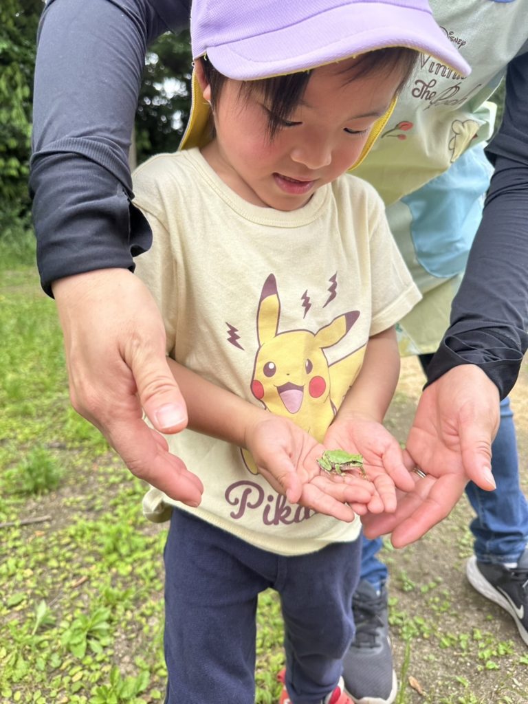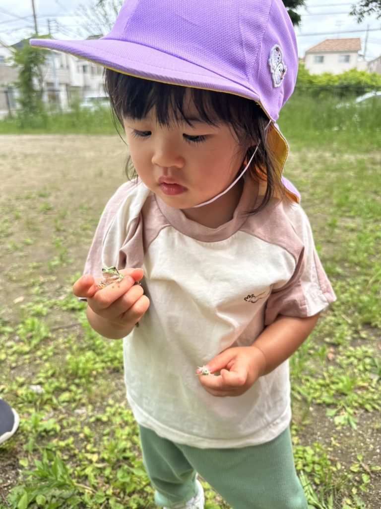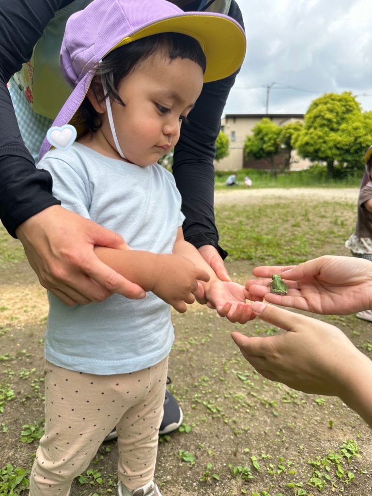 「うわ〜〜!」と逃げるお友だちや「かわいい〜」と見つめるお友だち。たくさんの表情が見られて、子どもたちも楽しそうでした🌼