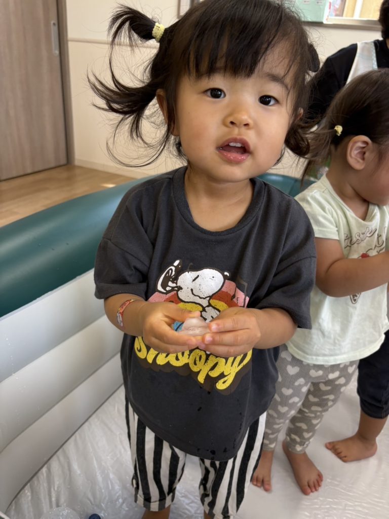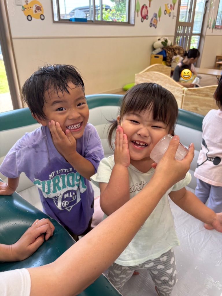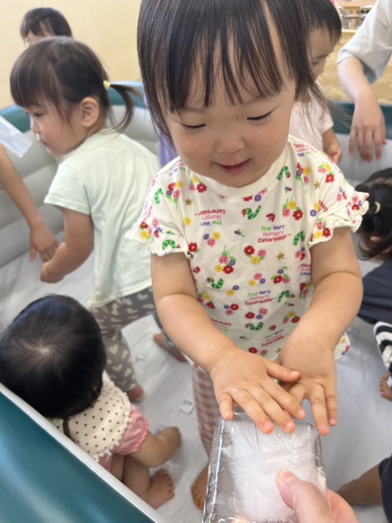今日も外はとても暑かったので、部屋で過ごしました!そして、この間大好評だった氷遊びを!!つめたい〜と大興奮でしたよ🧊