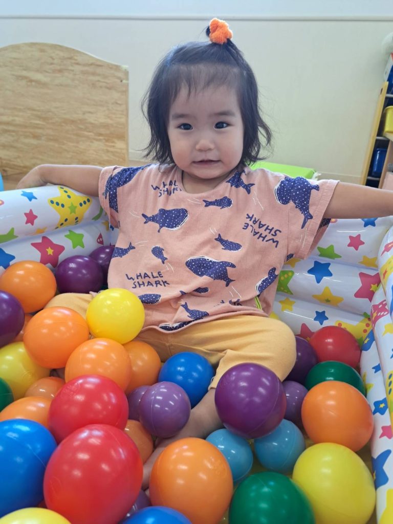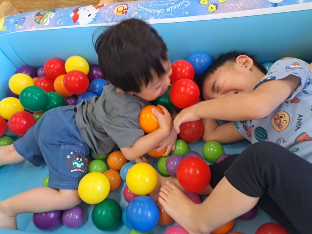 プールが✖️の子どもたちは、隣でボールプールをしました!