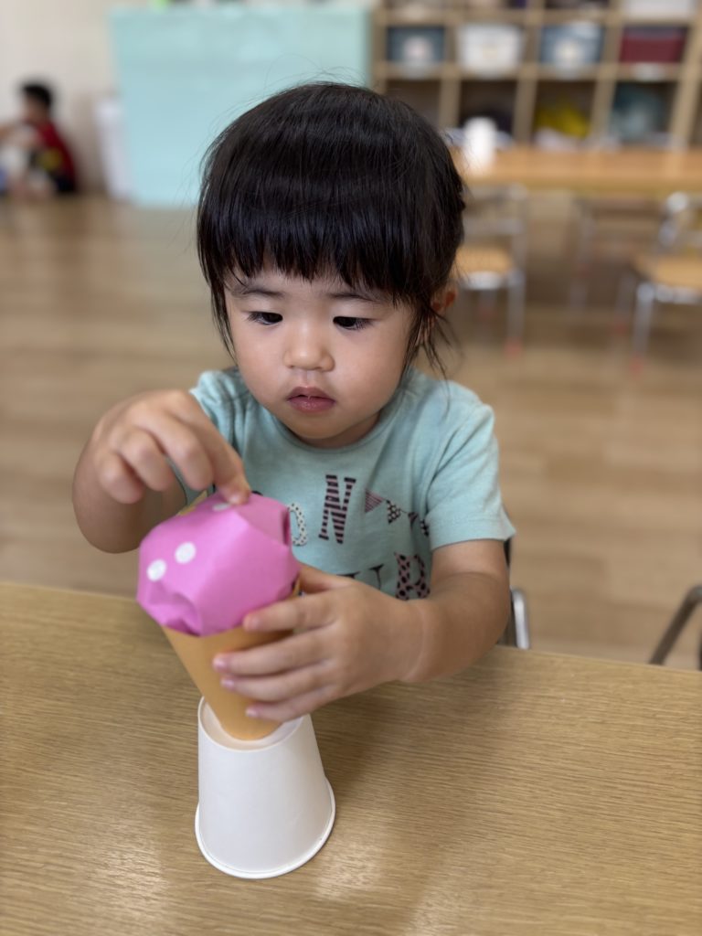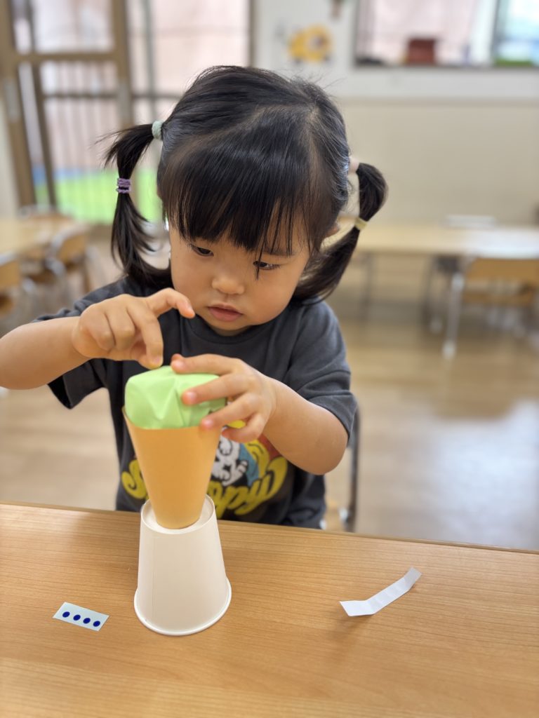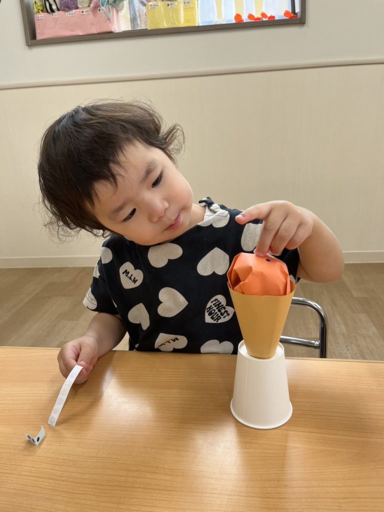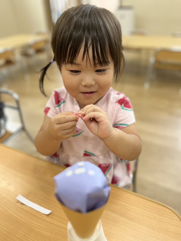 今日は夏祭りで使うものの製作をうさぎ組・ぞう組がしました!いつもより小さいシールを使いましたが、みんなとても上手でしたよ👏