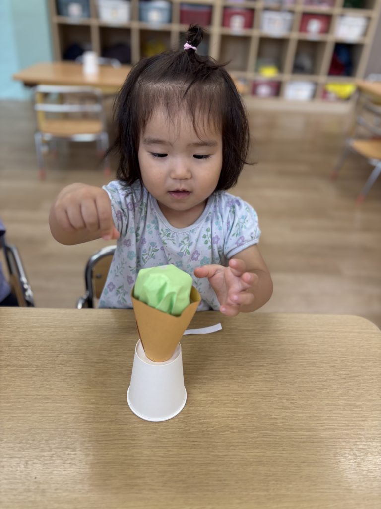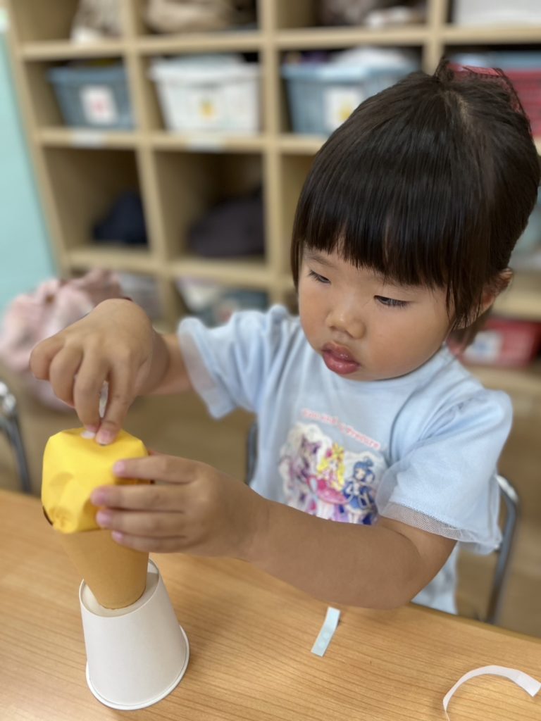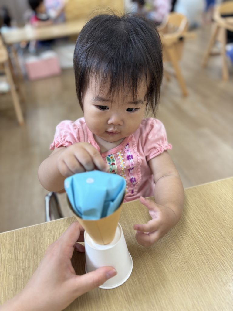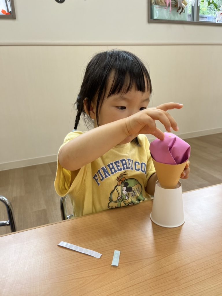 今日は夏祭りで使うものの製作をうさぎ組・ぞう組がしました!いつもより小さいシールを使いましたが、みんなとても上手でしたよ👏