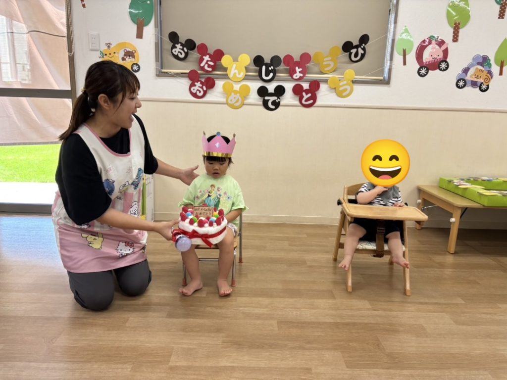 写真を撮ったりみんなでお祝いの歌をうたってケーキを作りました😊