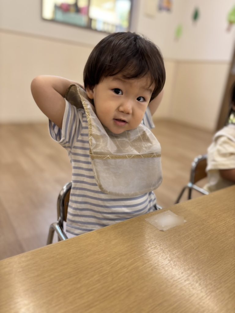 エプロン、自分で上手につけられるようになりました🎶