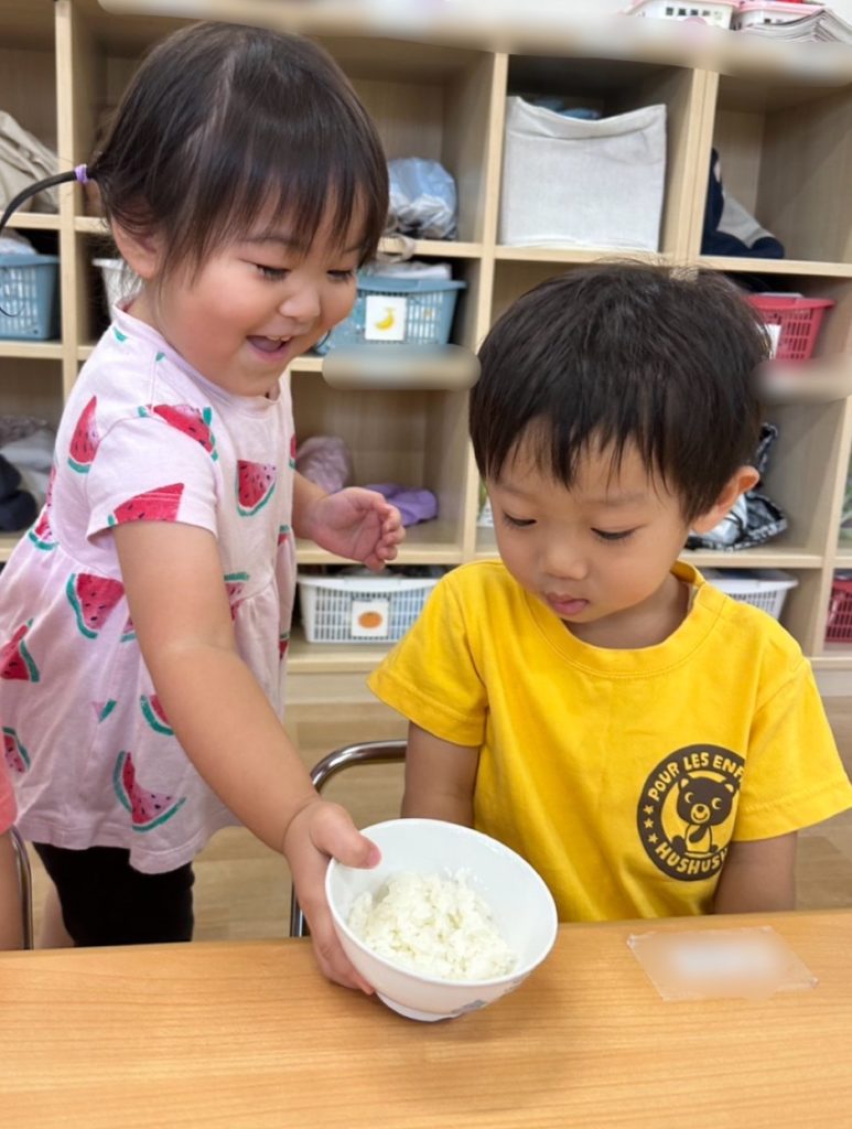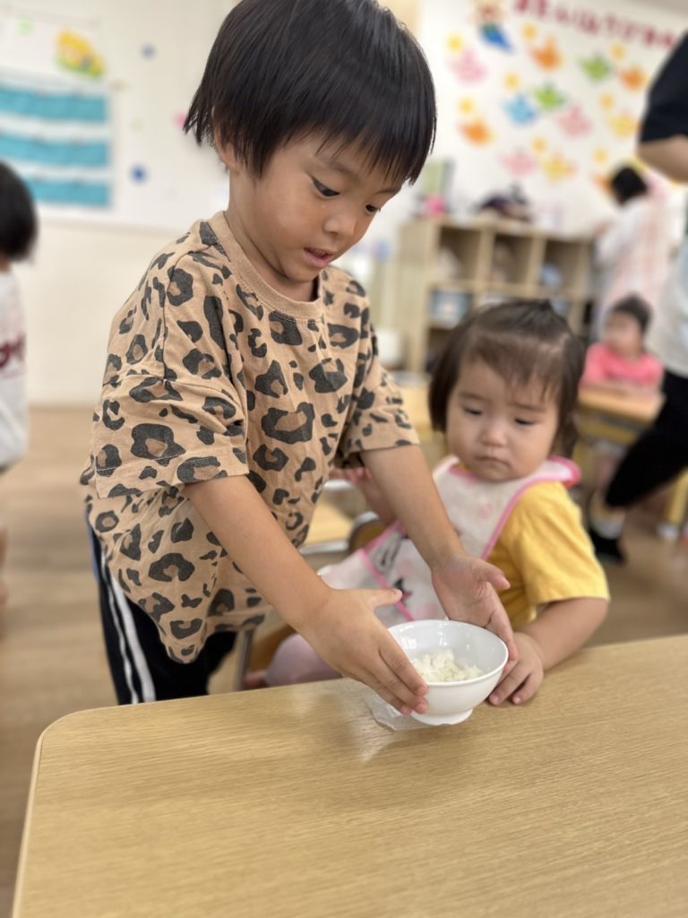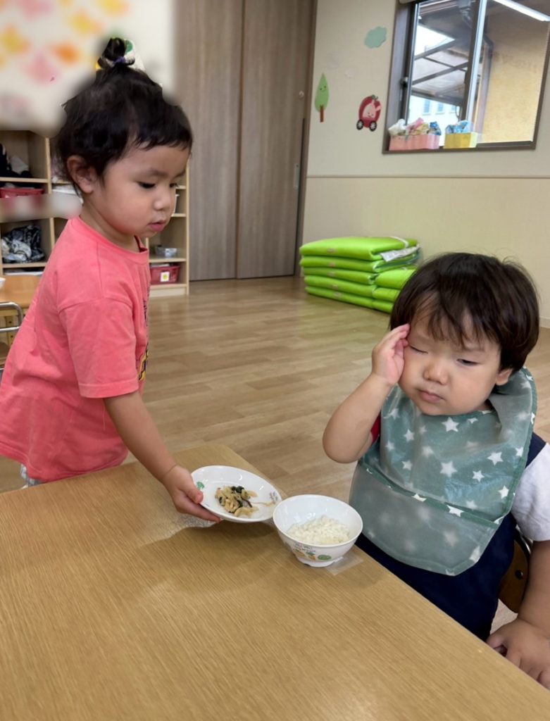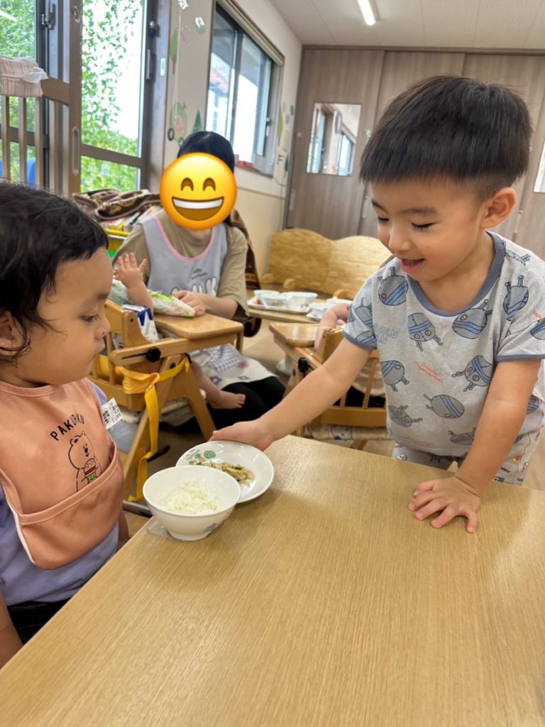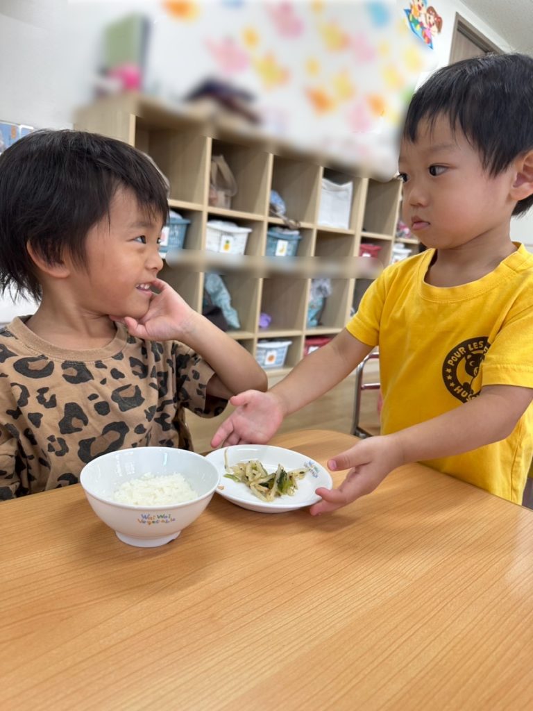 座っているお友だちも大きな声でご挨拶をしてくれて、とてもいい雰囲気のなか食事を楽しんでいました😊