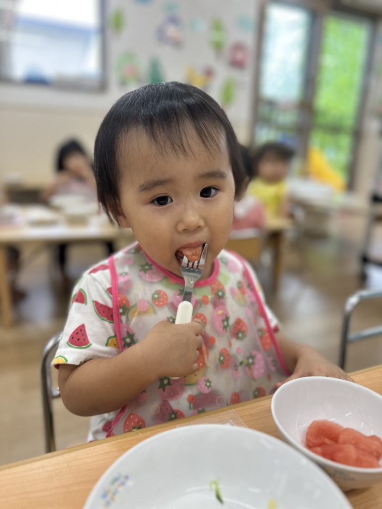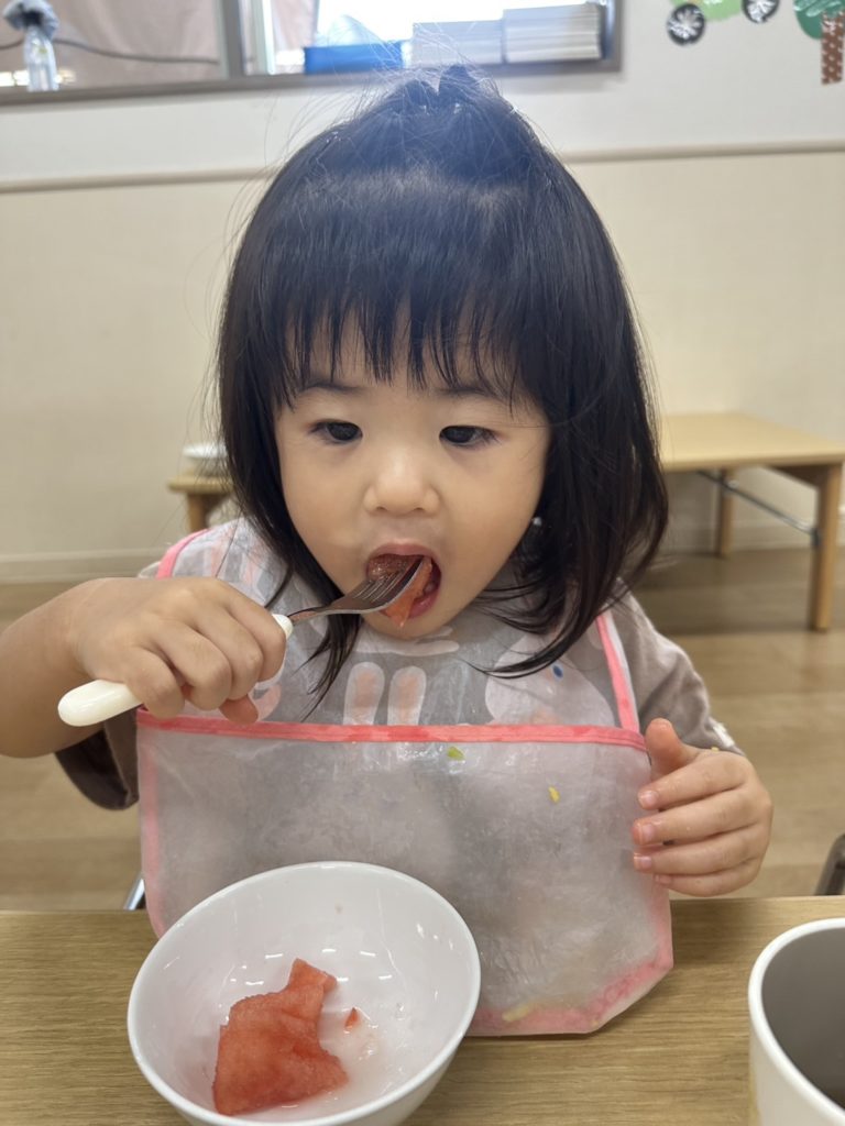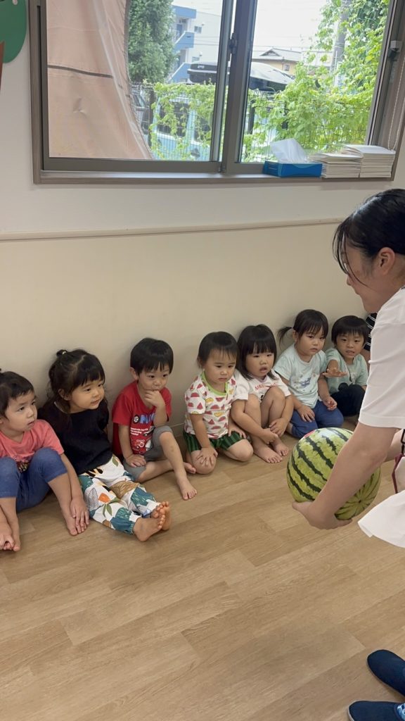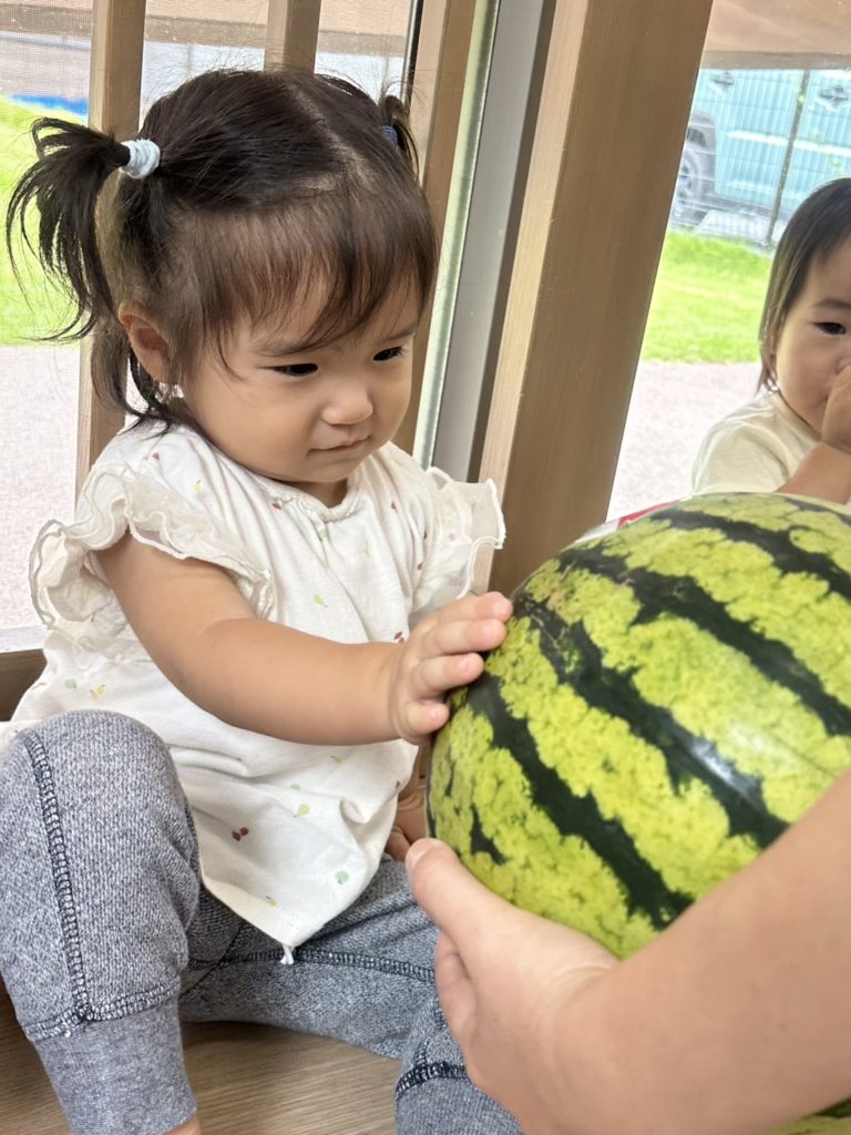 大きなすいかを持っていくと「大きいね♪」と嬉しそうにしていました😊