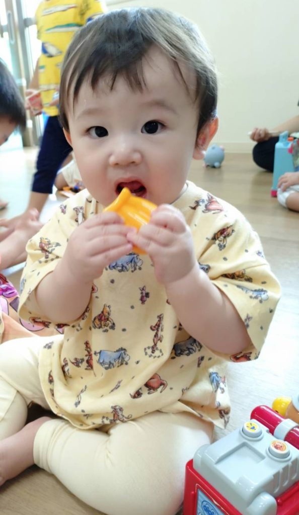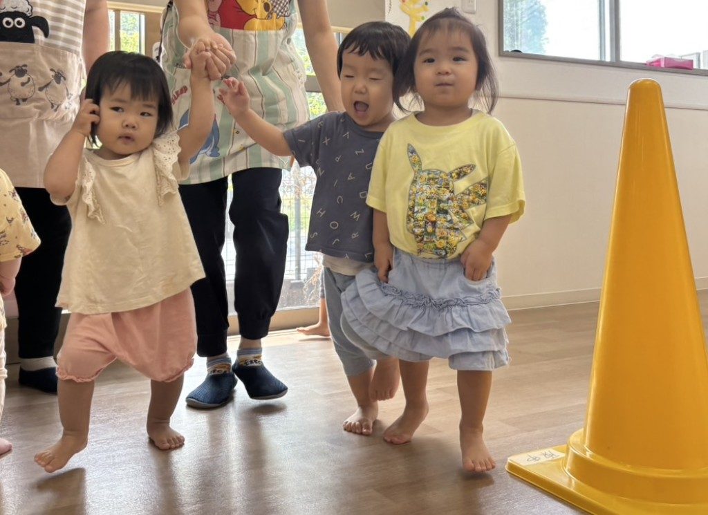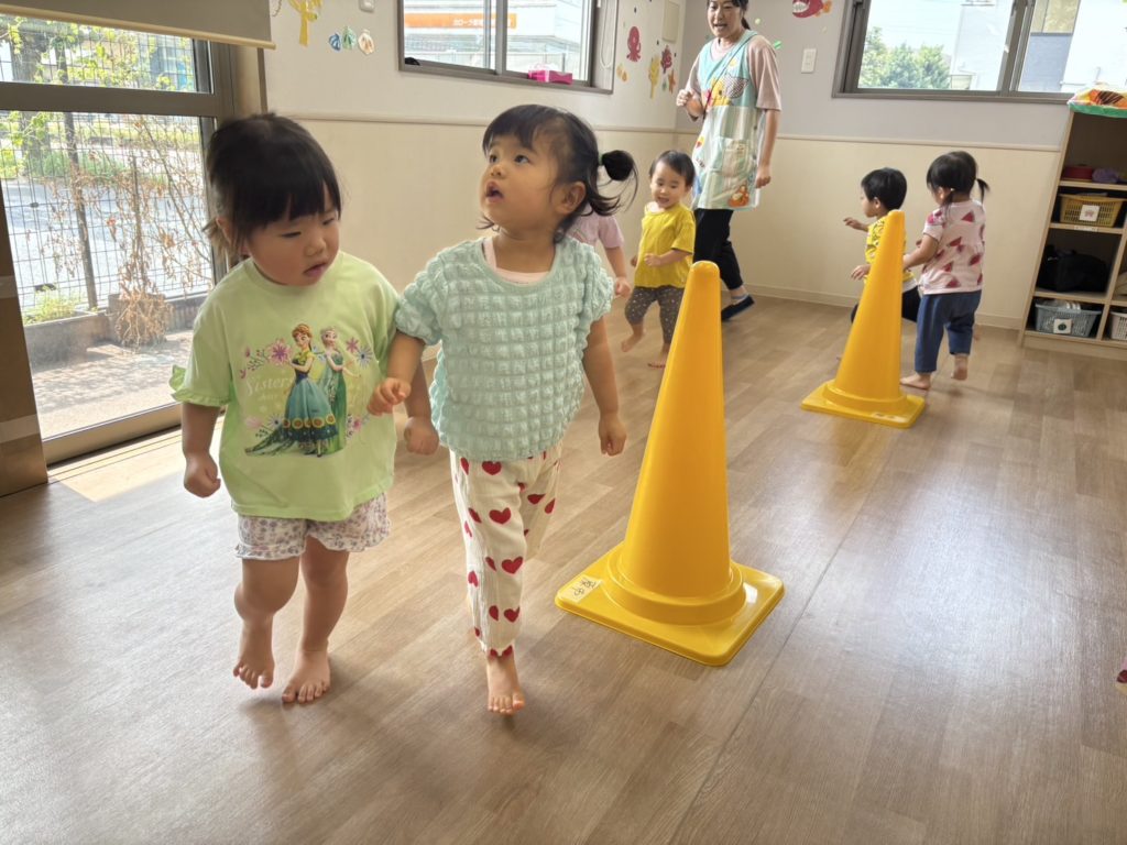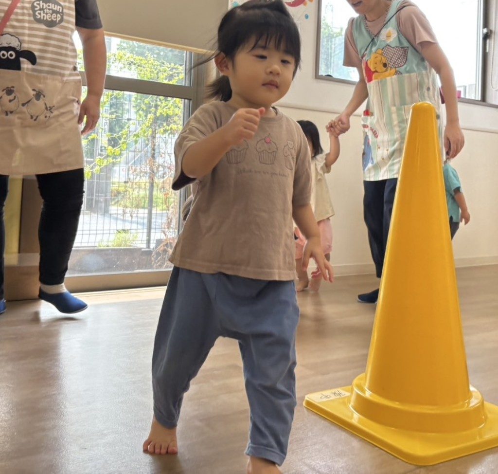 りす組さんはカラーコーンの近くを自由に歩いてみたり、おもちゃで遊びました🎶