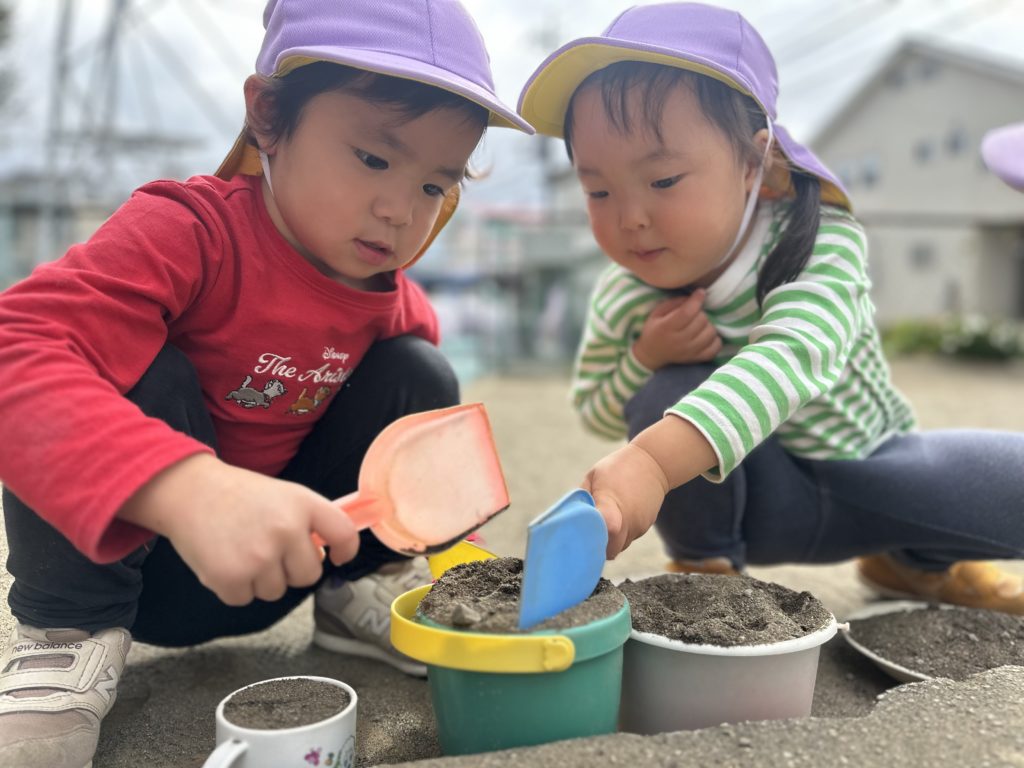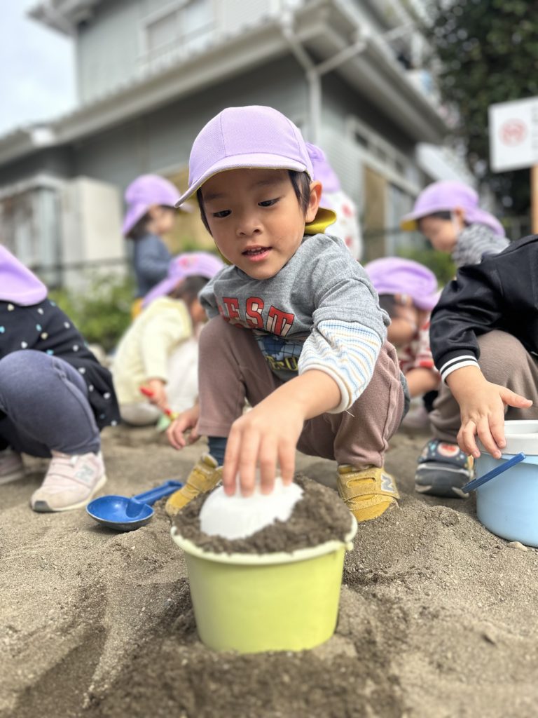 お砂場ではお料理に落とし穴作りに大忙しの子どもたちでした😁