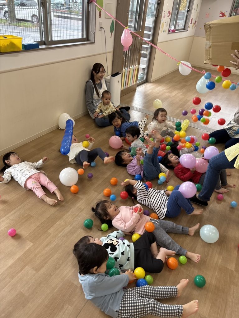 待ち時間や製作後は、風船にボール遊び、ぞう組さんは園庭でも遊びました🎵