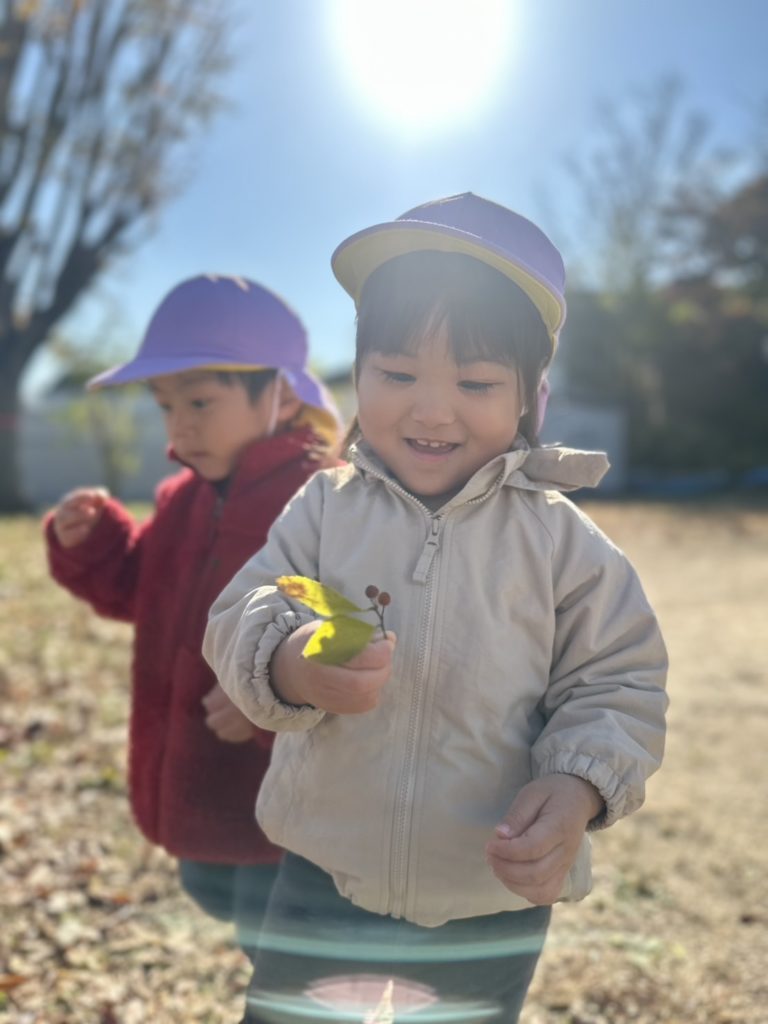 子どもたちの「みて〜」「どんぐり!」「あ!とりさん!」などの会話。