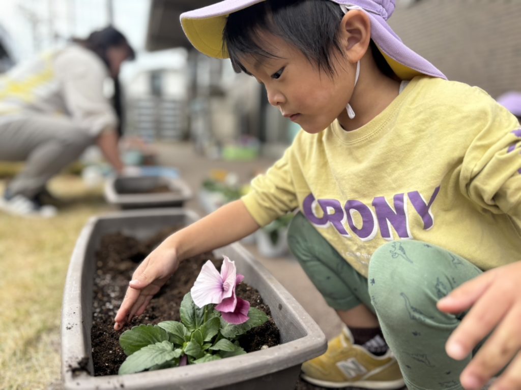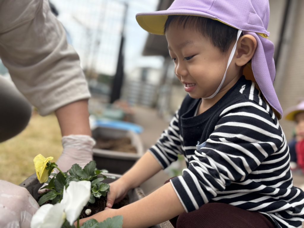 そしてぞう組さんには、パンジー植えもお手伝いしてもらいました🌸