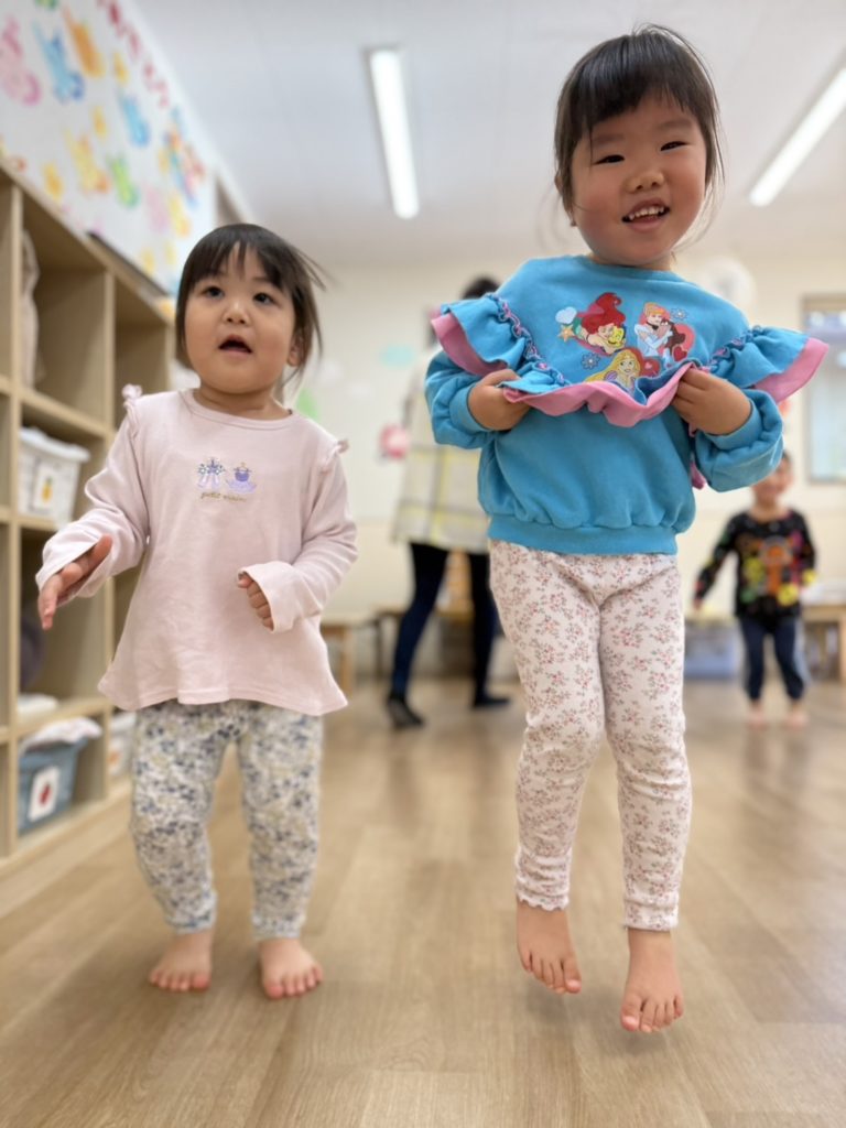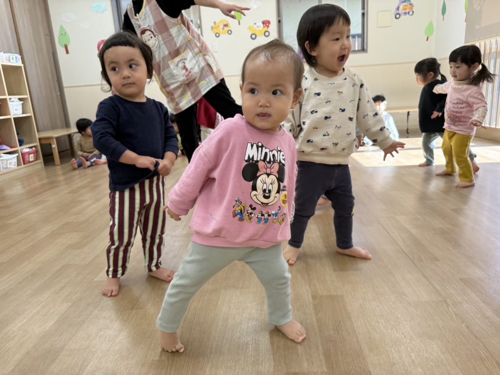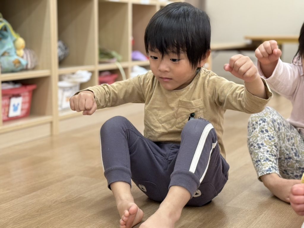 久しぶりのリズムは、ピアノを聴いてこれはなんだっけ??っと考える姿もありましたが、思い出すと、元気いっぱい体を動かしていましたよ♡