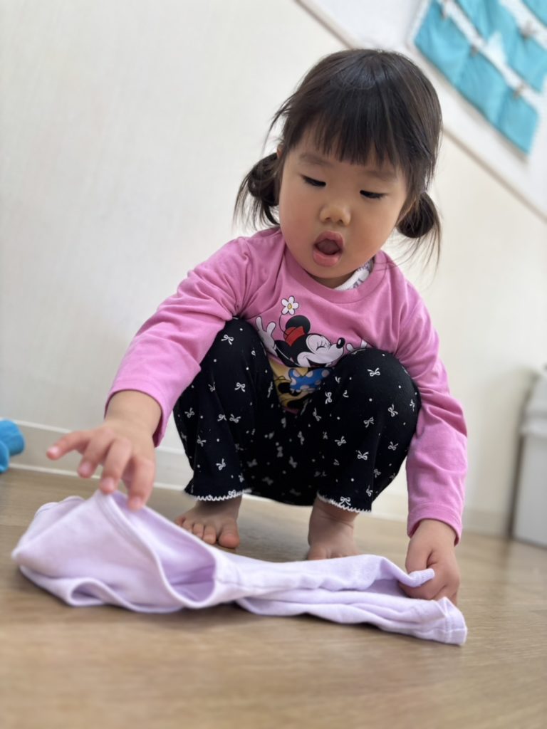 今日はソフトブロックとおままごとで遊びました ソフトブロック🧱💚💙 すわってみる?おひるごはんなにかな〜?おいすみーつけた!いちごだよ! ソフトブロックを物や食べ物に例えて