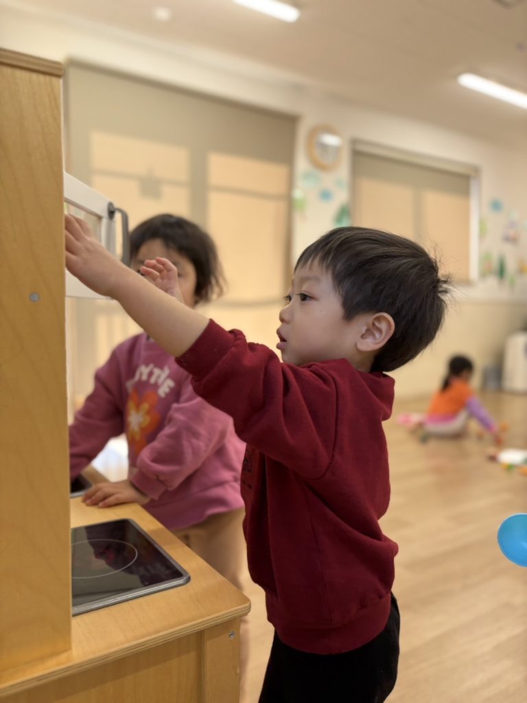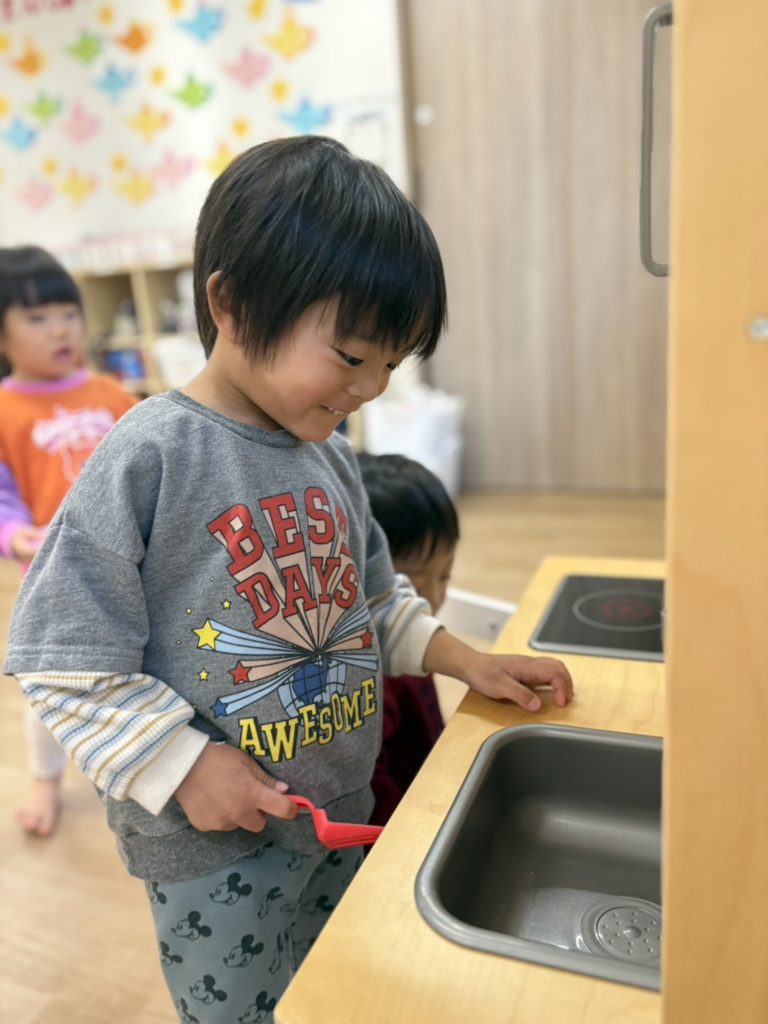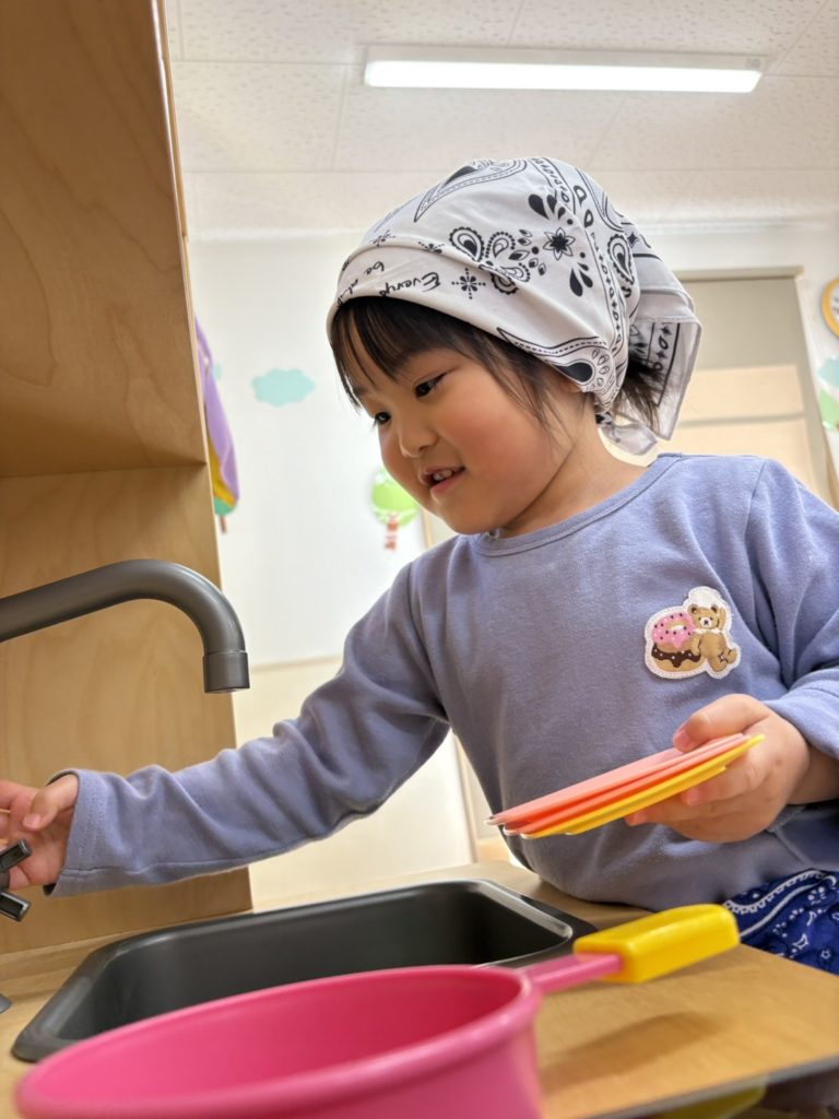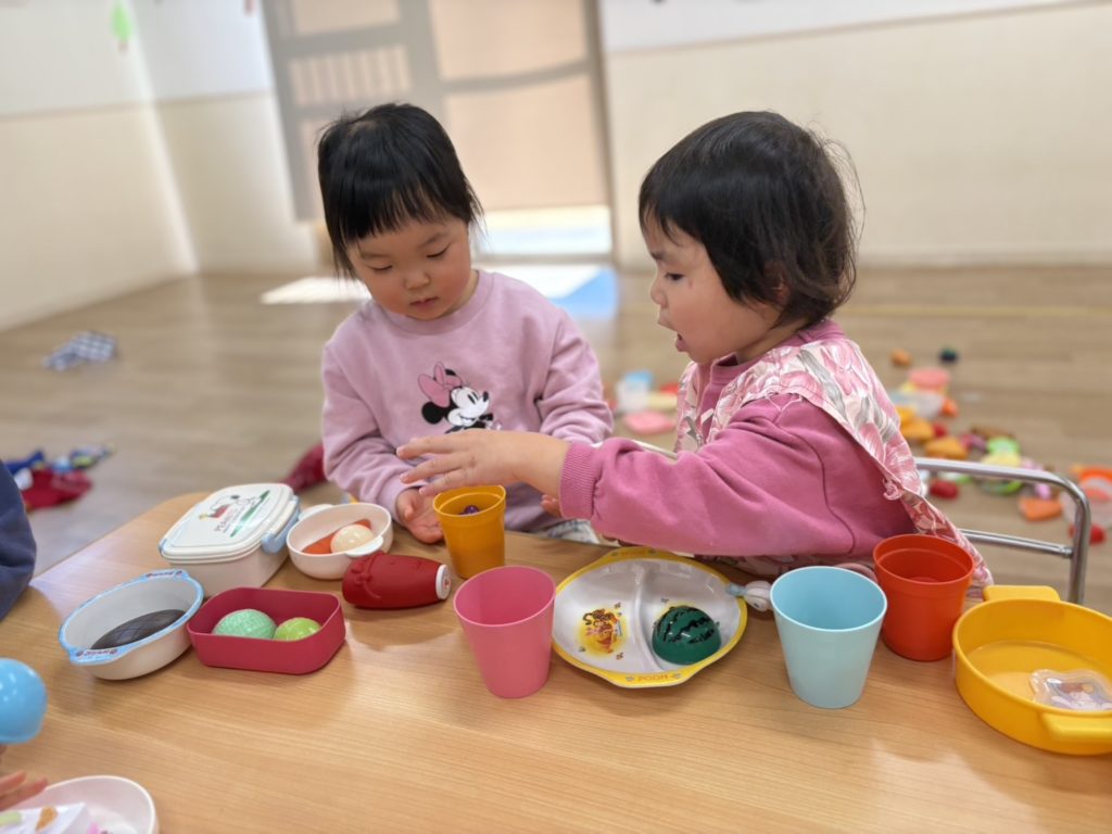 ぞう組さんは、キッチンやテーブルを出しておままごと♡