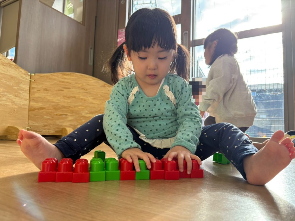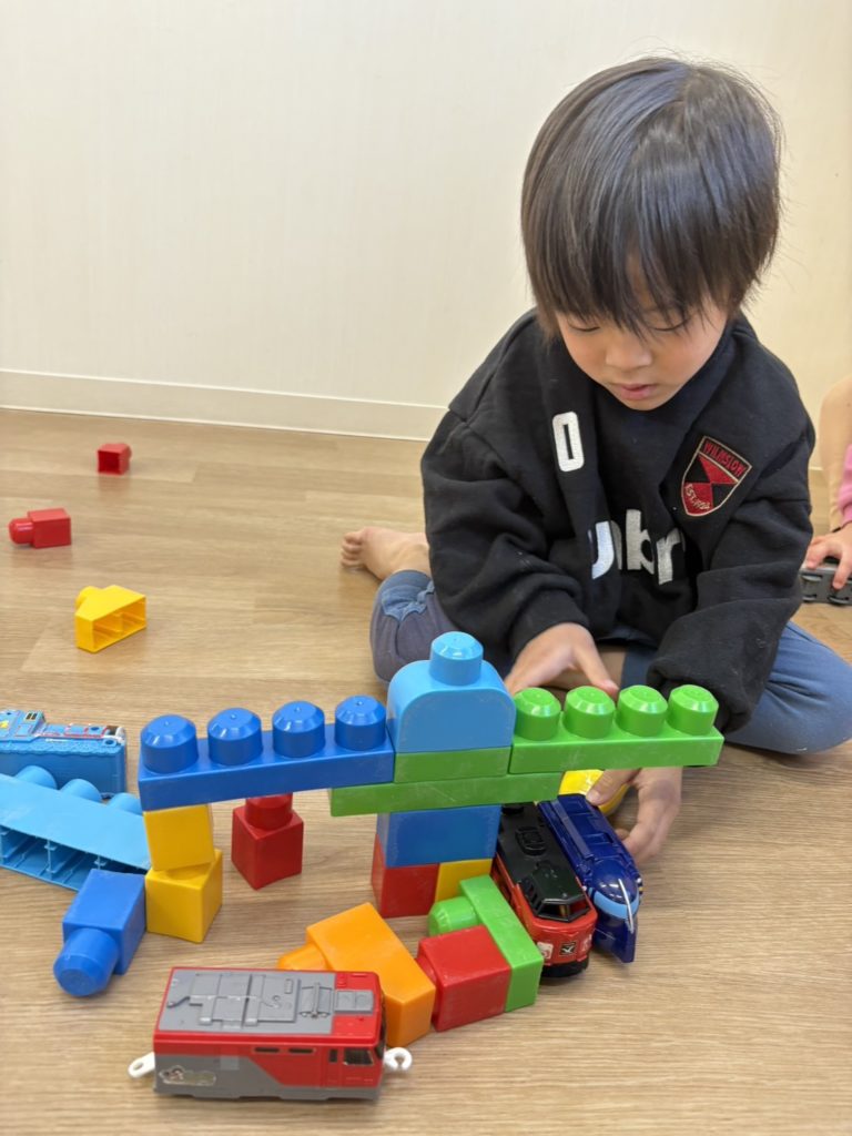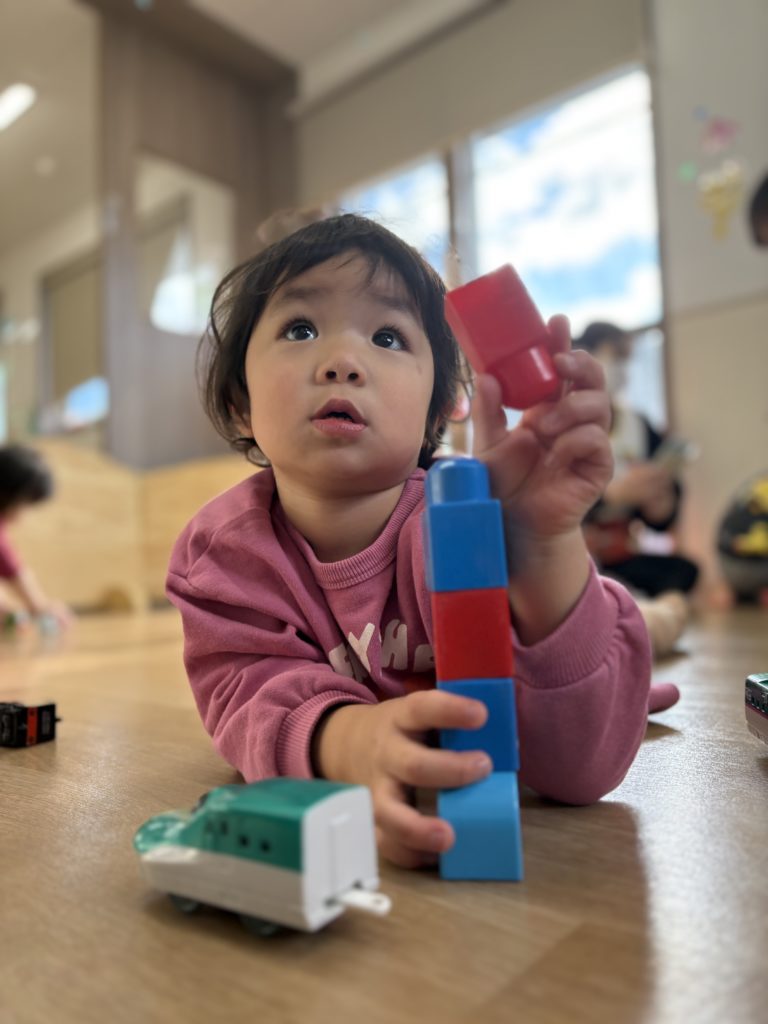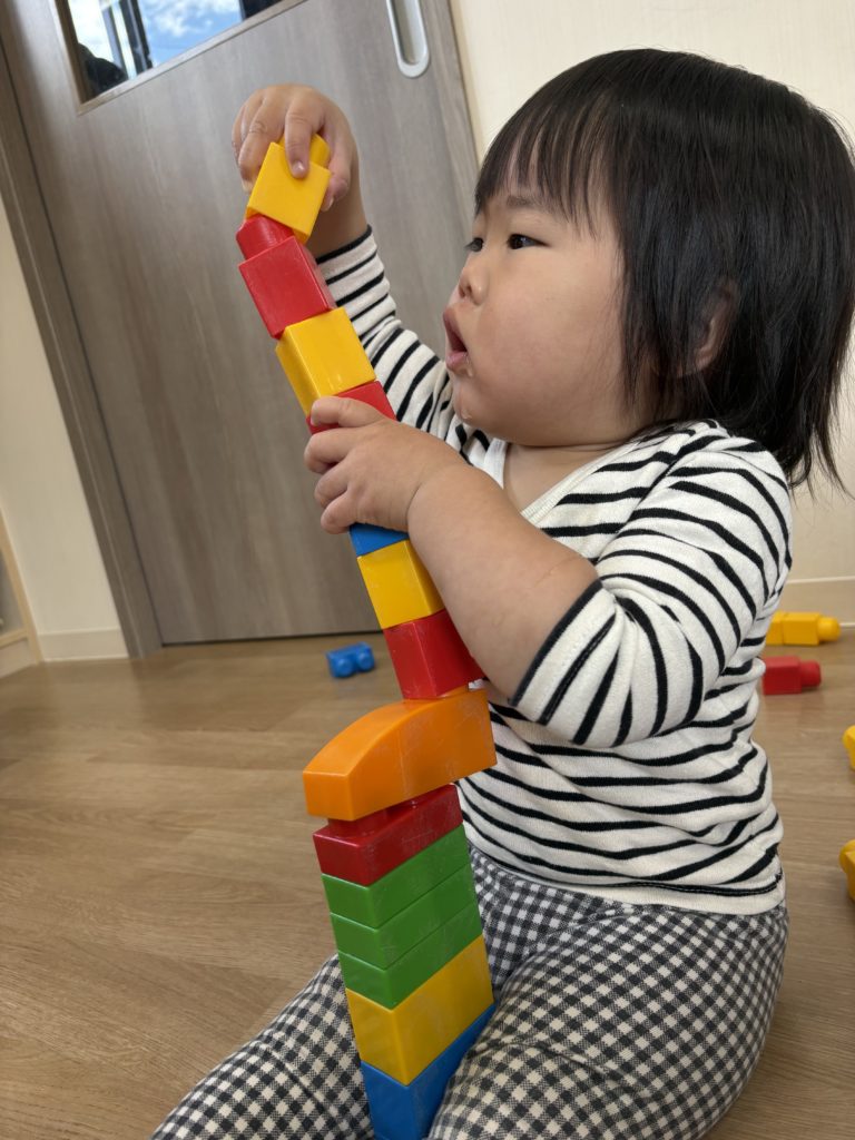 高く積んだり、横に並べるなど自分たちで工夫をしながら楽しんでいる様子でした✨